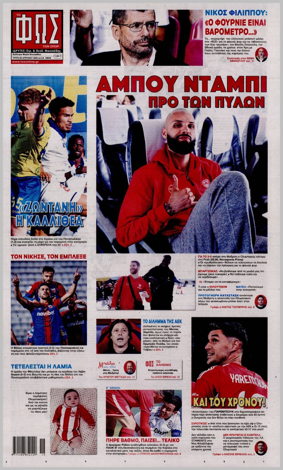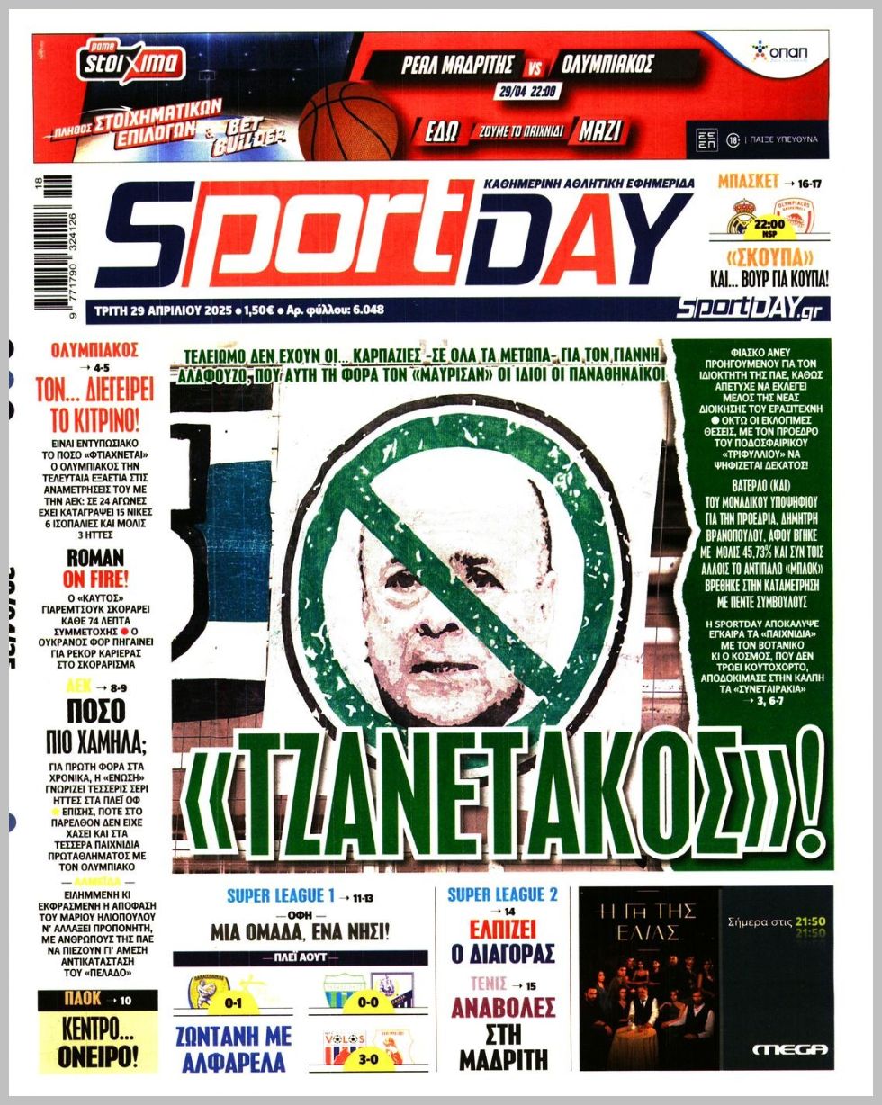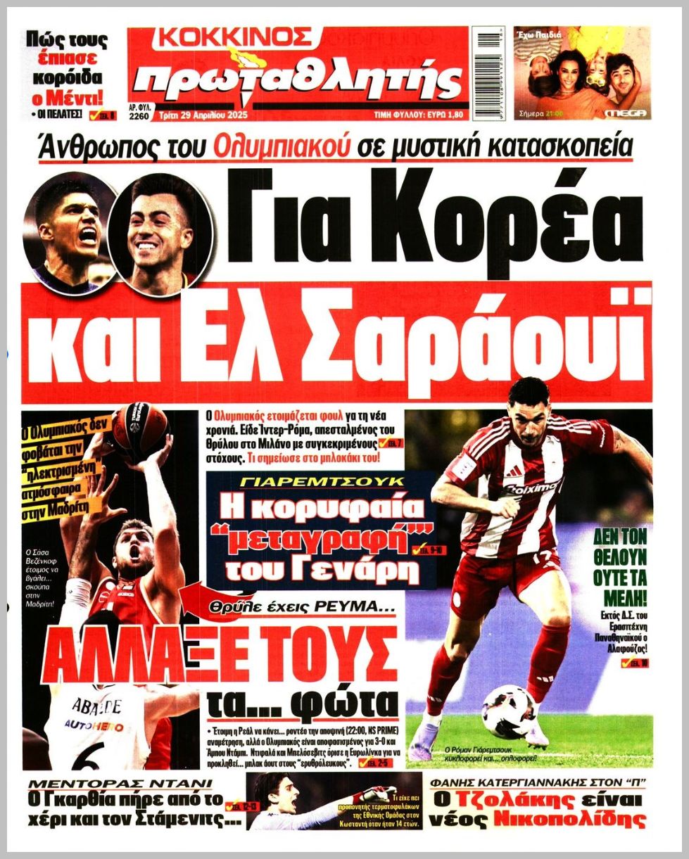 Τα αθλητικά πρωτοσέλιδα της Τρίτης (29/4)