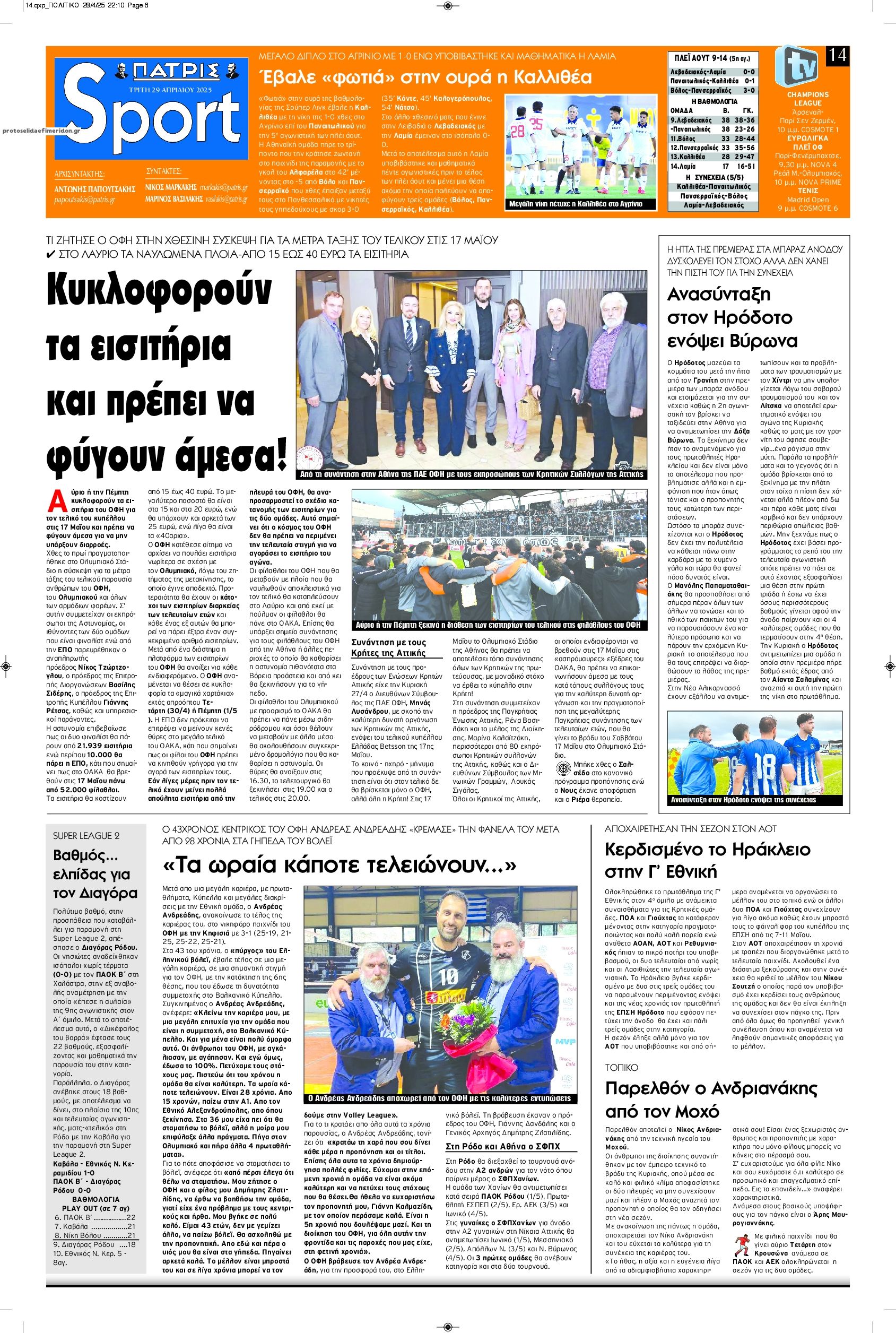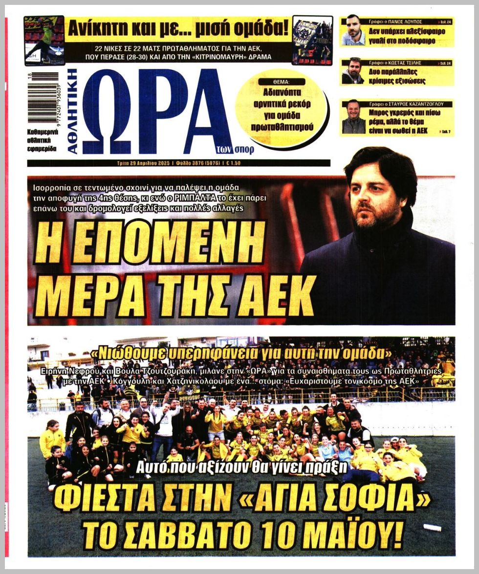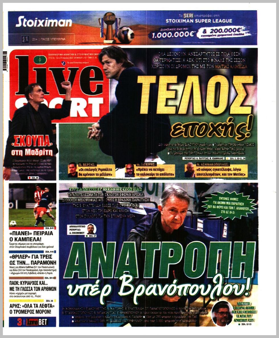 Τα αθλητικά πρωτοσέλιδα της Τρίτης (29/4)