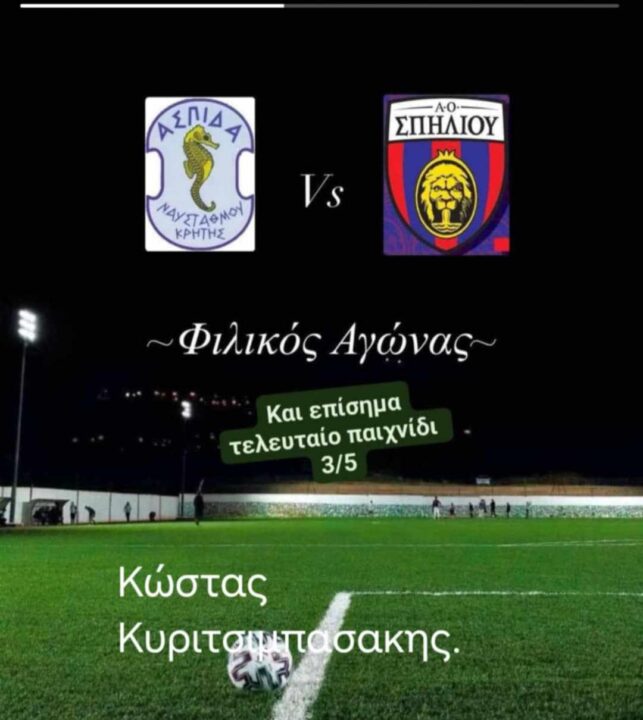 Ασπίδα και Σπήλι θα τιμήσουν σήμερα (03/05) τον Κώστα Κυριτσιμπασάκη σε φιλική αναμέτρηση με αφορμή την απόσυρσή του από την ενεργό δράση