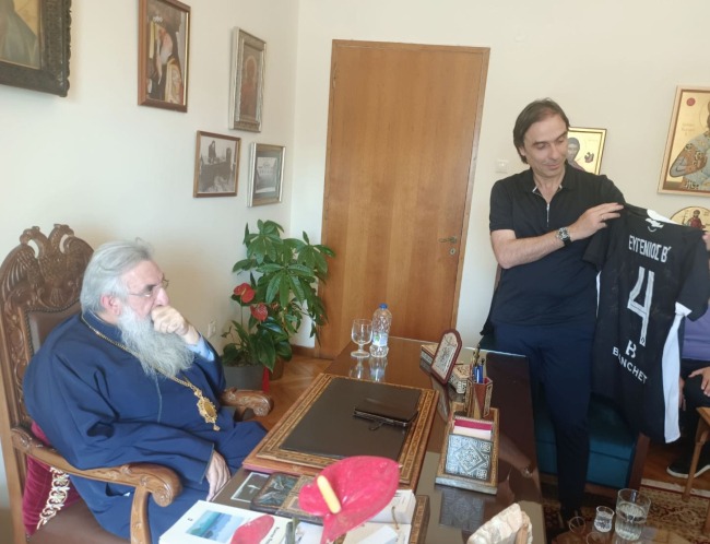 Το δώρο του Αρχιεπίσκοπου Κρήτης στους παίκτες του ΟΦΗ και η φανέλα που παρέδωσε ο Ηλίας Πουρσανίδης