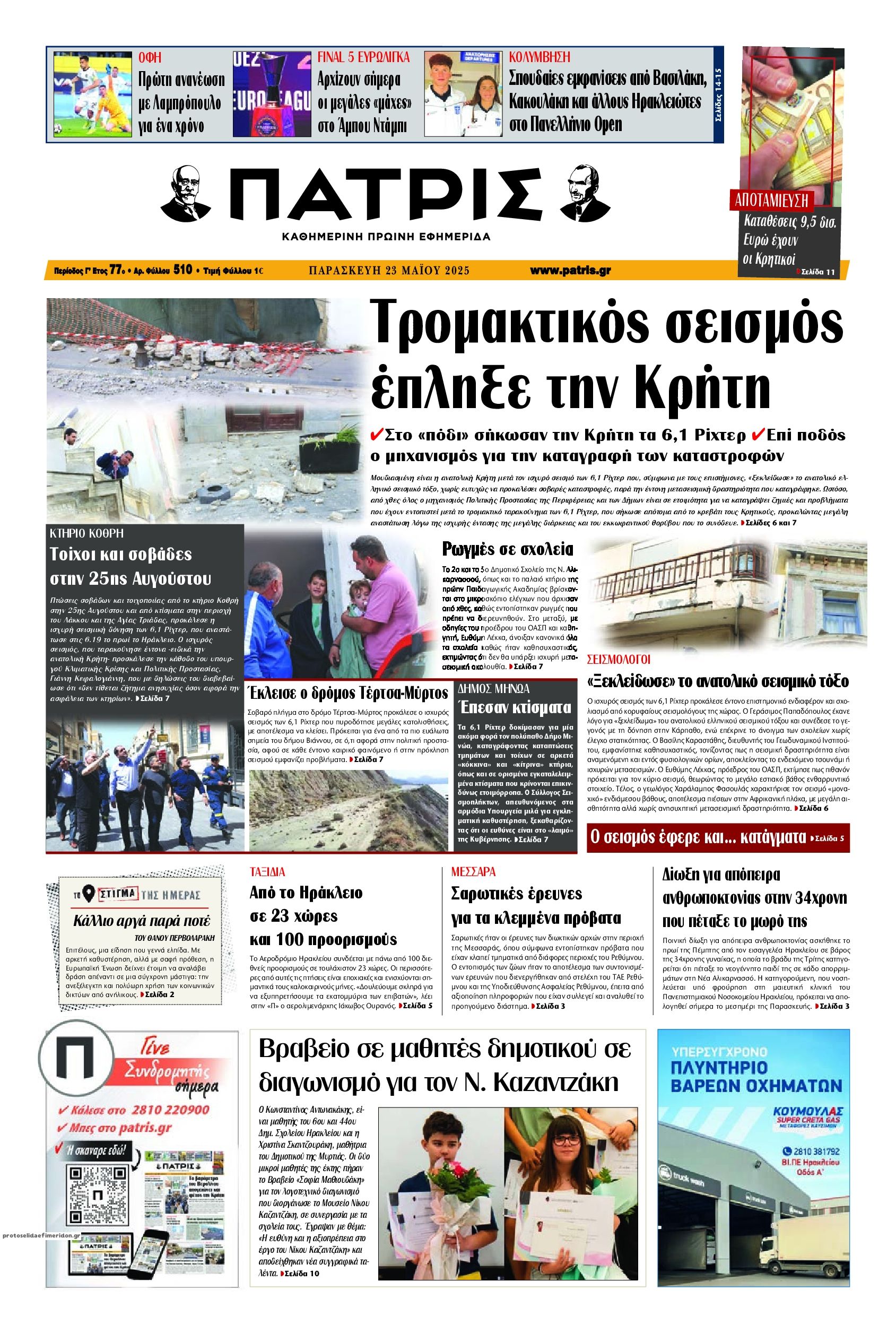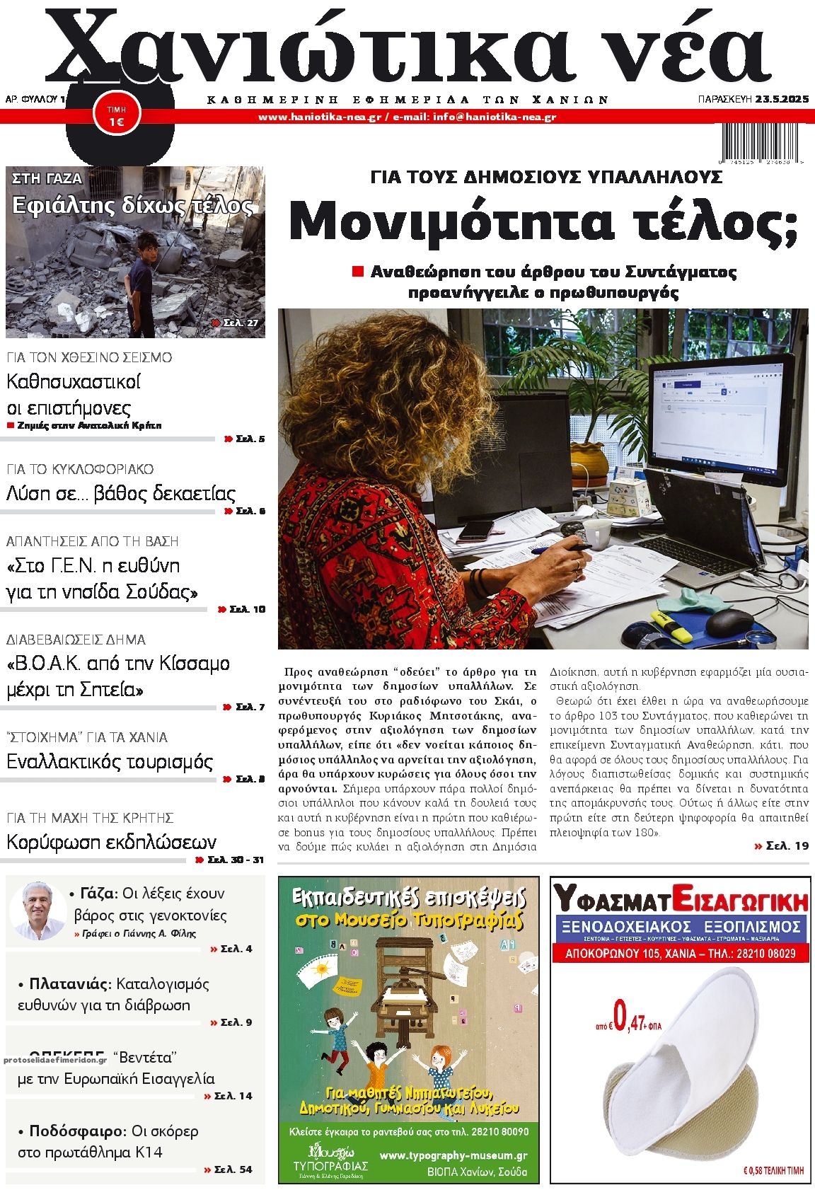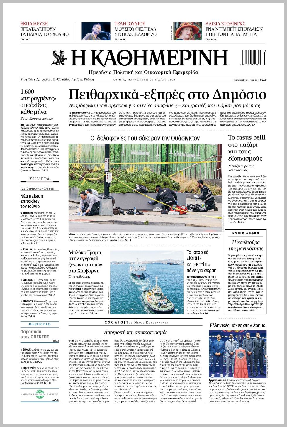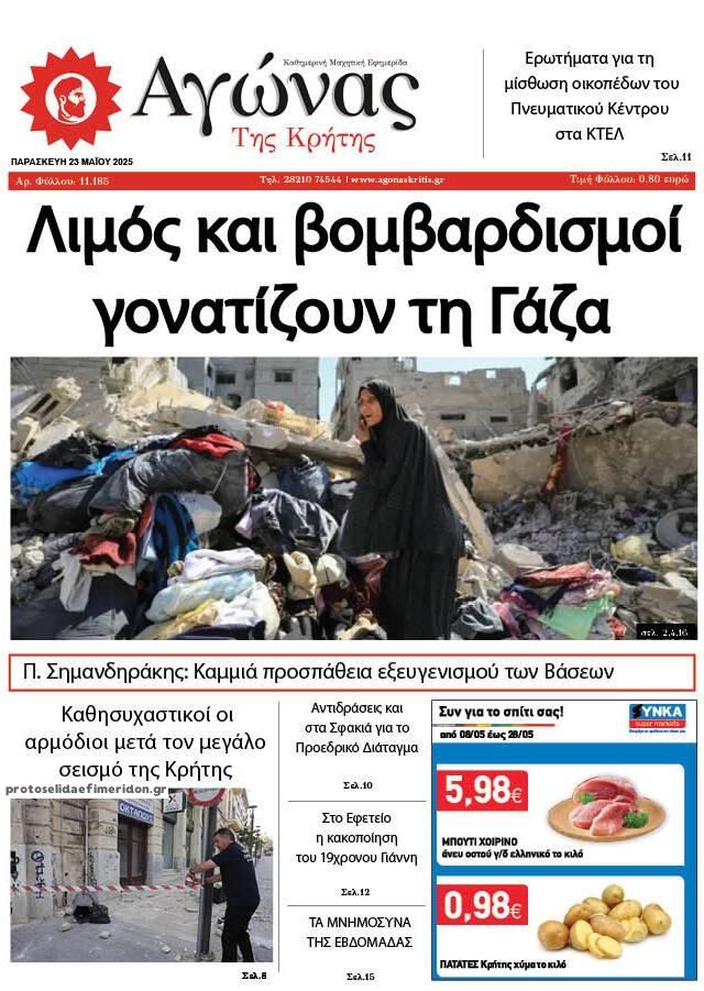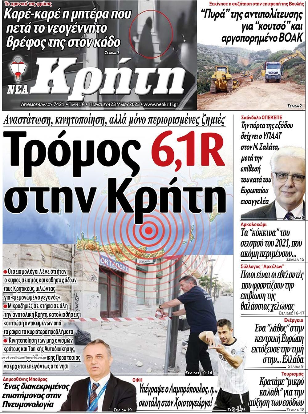 Τα πρωτοσέλιδα της Παρασκευής (23/5) σε Κρήτη και Αθήνα