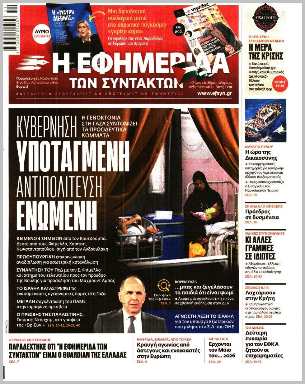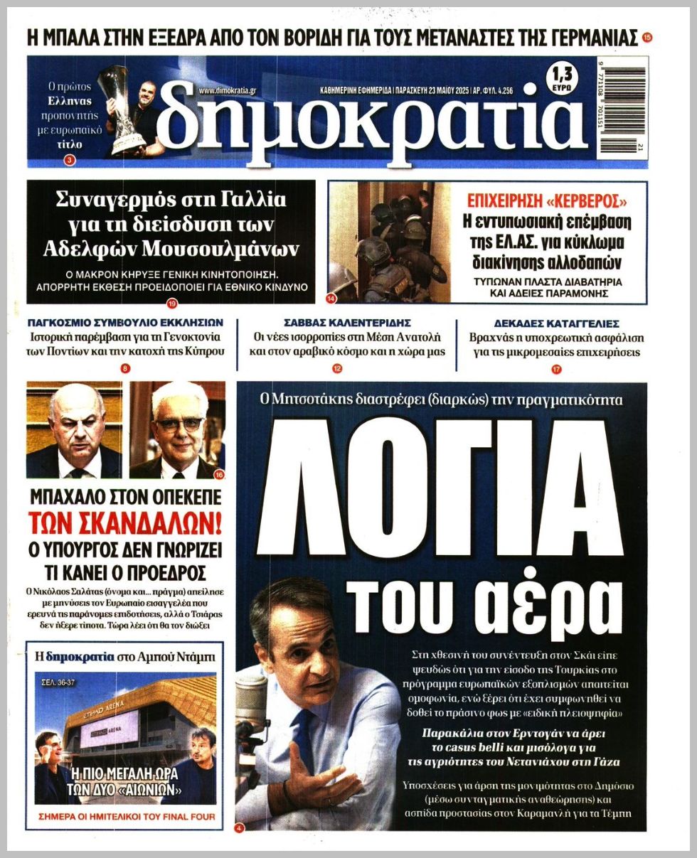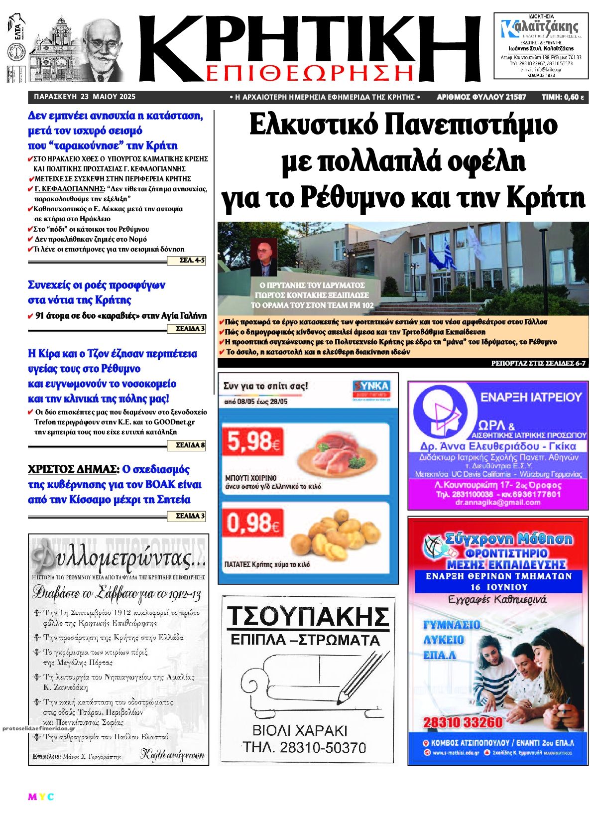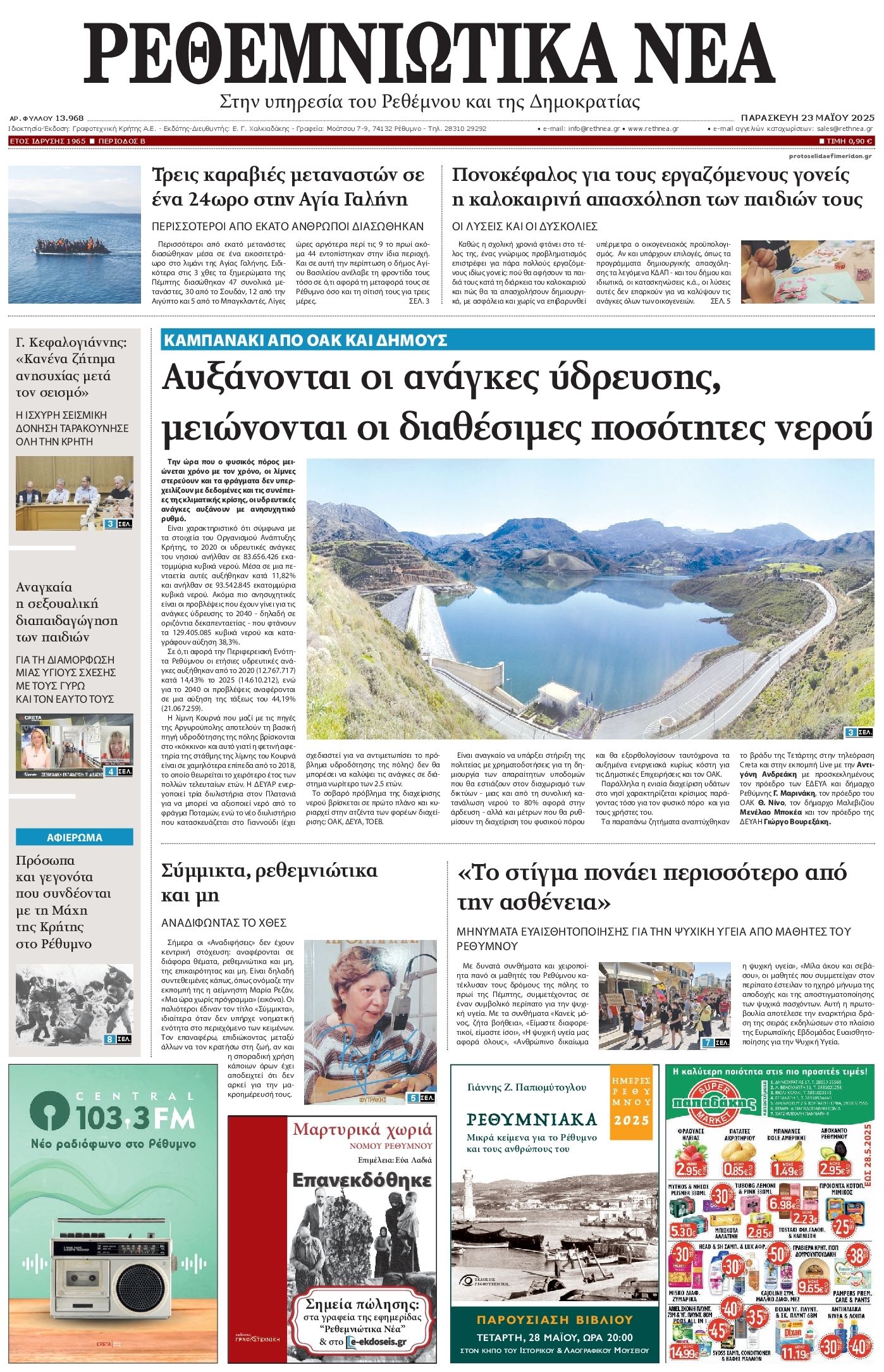 Τα πρωτοσέλιδα της Παρασκευής (23/5) σε Κρήτη και Αθήνα