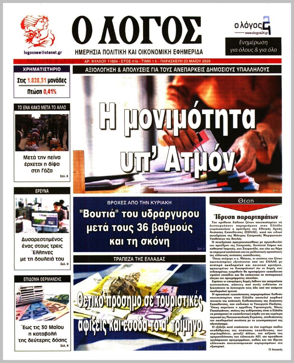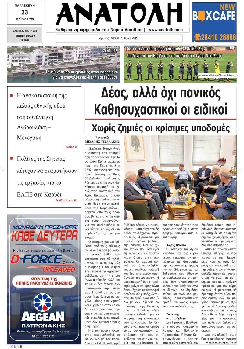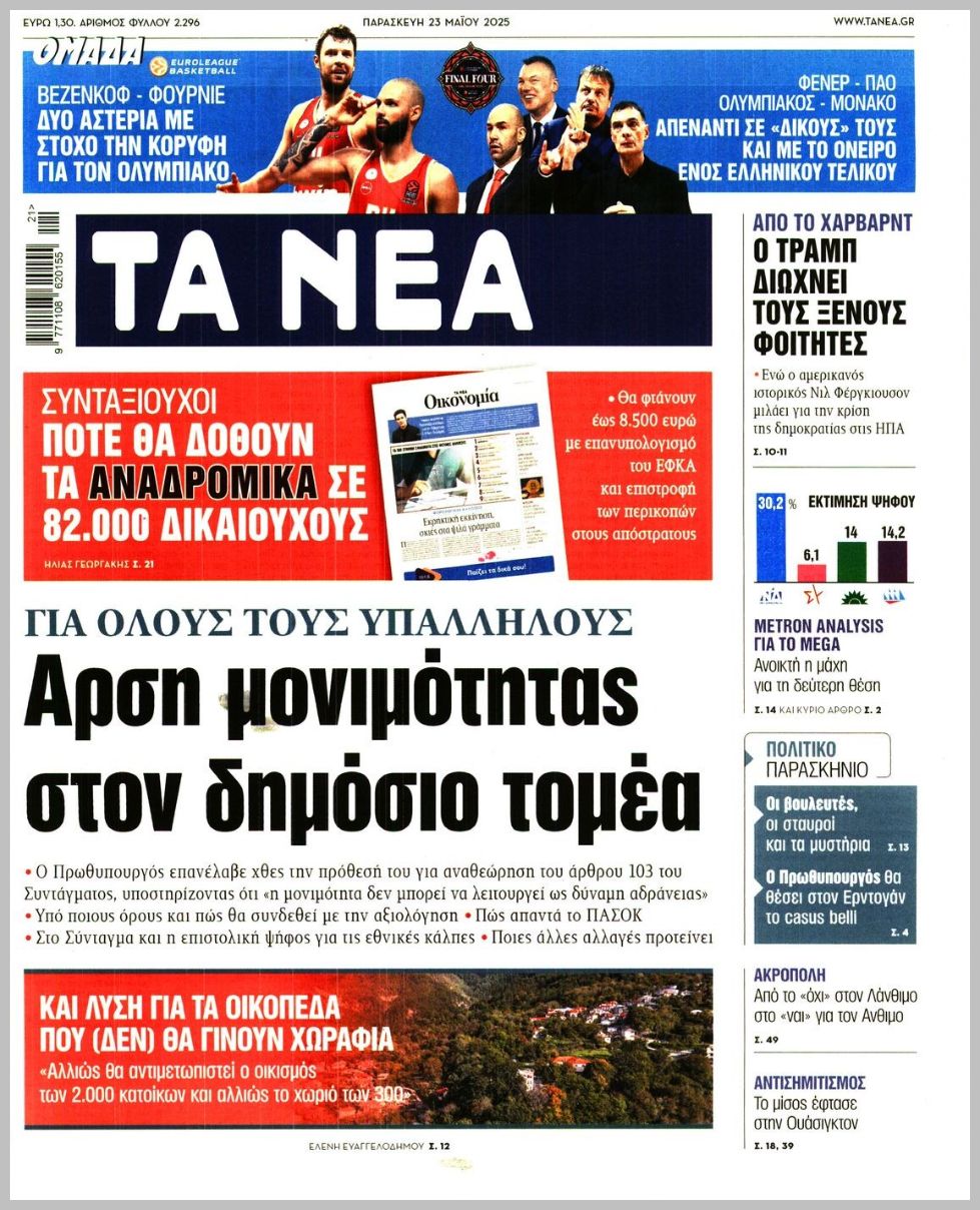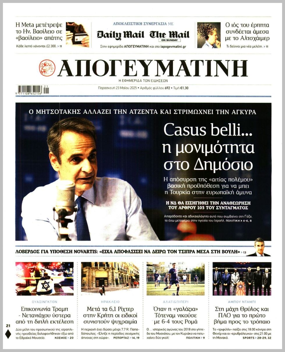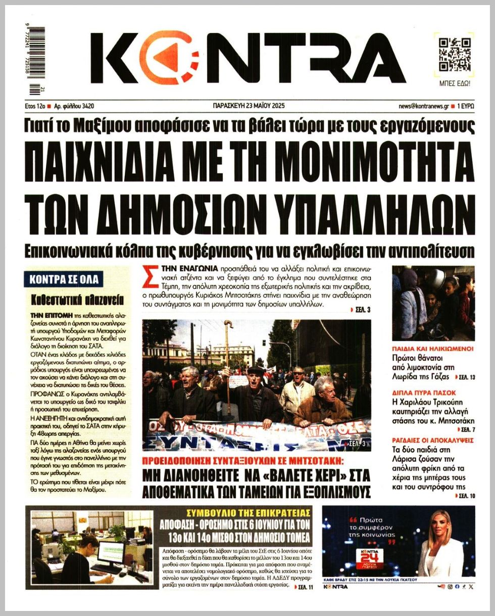 Τα πρωτοσέλιδα της Παρασκευής (23/5) σε Κρήτη και Αθήνα