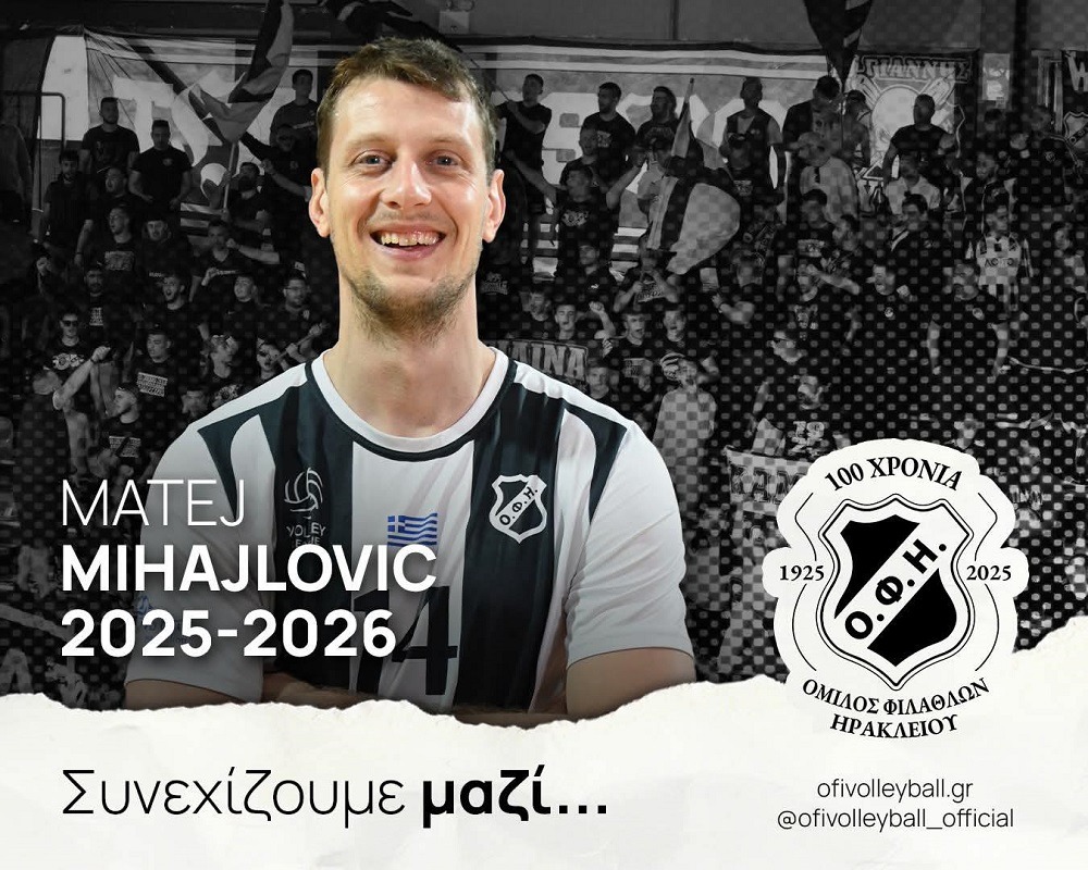 Μετά απο δυο εξαιρετικές σεζόν με τον ΟΦΗ, στις οποίες πανηγύρισε την πρώτη χρονιά, άνοδο στην Volley League και τη δεύτερη χρονιά, την 6η θέση, που δίνει συμμετοχή στο Βαλκανικό Κύπελλο, ο Ματέι Μιχαίλοβιτς, θα συνεχίσει να αποτελεί σημείο αναφοράς, για την ομάδα μας.