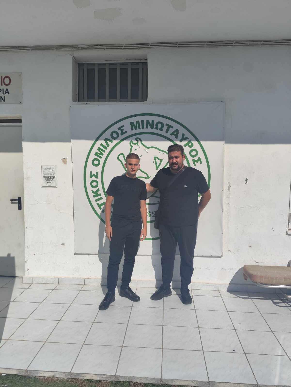 Στη φωτογραφία, το νέο μεταγραφικό απόκτημα της ομάδας μας, Νίκος Ψυλλάκης, μαζί με τον διοικητικό παράγοντα των Νέων Μινωταύρου, Γιώργο Χαραλαμπάκη.