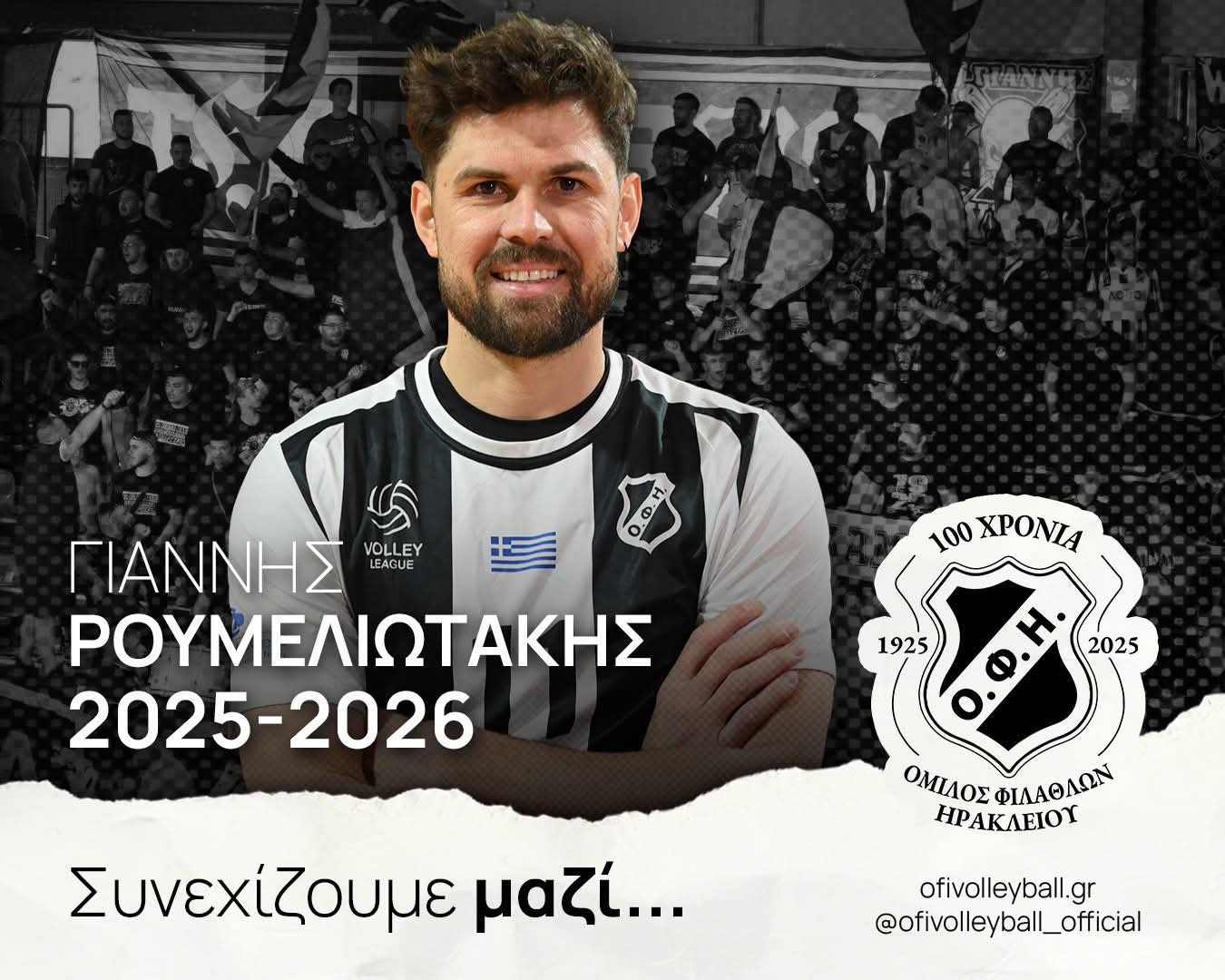 Την ανανέωση της συνεργασίας με τον Γιάννη Ρουμελιωτάκη ανακοίνωσε το τμήμα βόλεϊ του ΟΦΗ με τον έμπειρο αθλητή να συνεχίζει στα “ασπρόμαυρα” για τρίτη συνεχόμενη χρονιά.