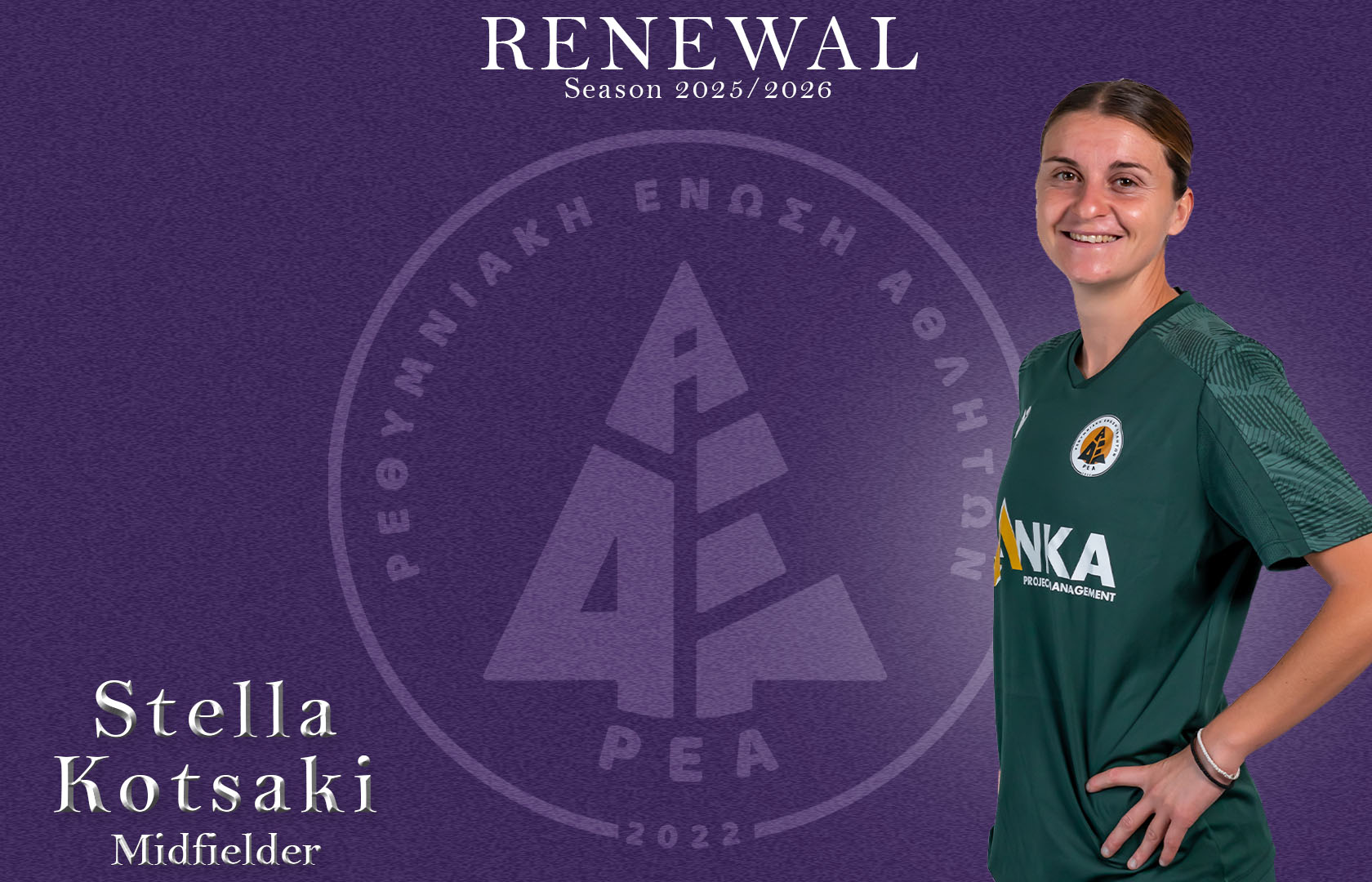 Ο Α.Ο. Ρ.Ε.Α. είναι στην ευχάριστη θέση να ανακοινώσει την επέκταση της συνεργασίας με τη διεθνή ποδοσφαιρίστρια Στέλλα Κοτσάκι.