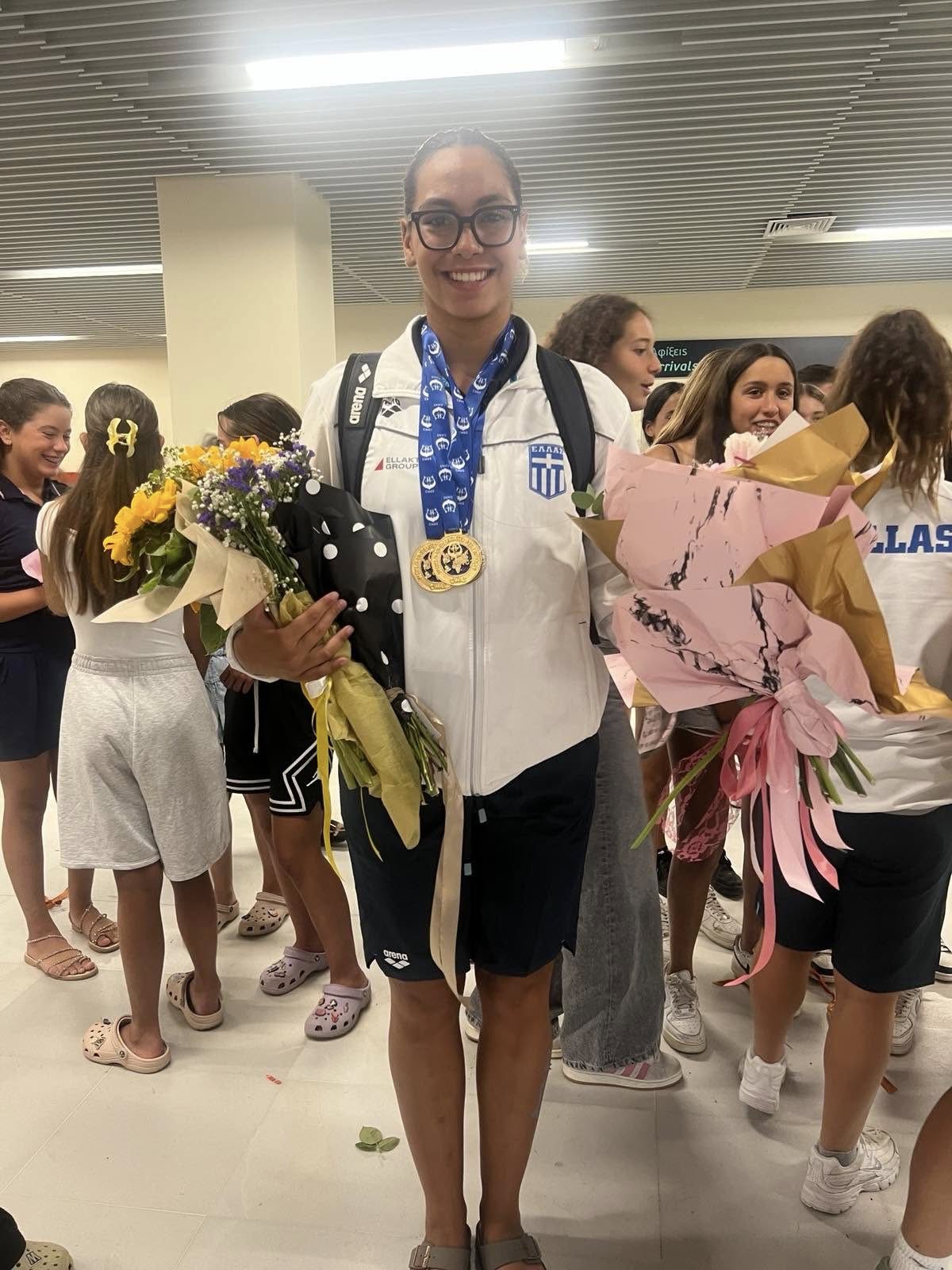 Με συγκίνηση και περηφάνια υποδέχθηκαν τις Βλαχαντώνη, Χατζηδάκη και Χατζηπλή μετά το Παγκόσμιο Πρωτάθλημα Τεχνικής Κολύμβησης