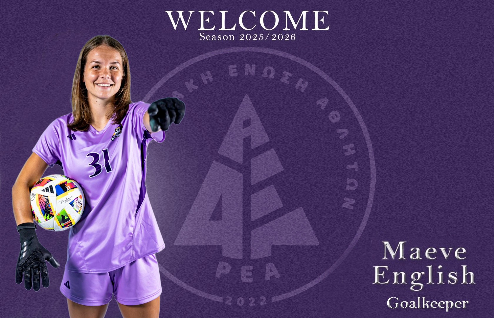 Μία φερέλπιδα τερματοφύλακα (γεν. 20/6/2002) με πολλές διακρίσεις στην κολεγιακή της καριέρα πρόσθεσε στο δυναμικό της η ομάδα μας, ξεκινώντας της μεταγραφές 2025-26 με την Maeve English. Μάλιστα, πρόκειται για την πρωταθλήτρια του AAC ως αρχηγός του East Carolina University (ECU) την περσινή σεζόν.