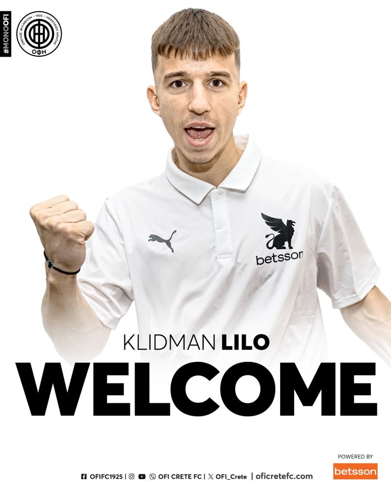Η ΠΑΕ ΟΦΗ ανακοινώνει την απόκτηση του ποδοσφαιριστή, Klidman Lilo, ο οποίος υπέγραψε συμβόλαιο με την ομάδα μας διάρκειας δυο ετών.