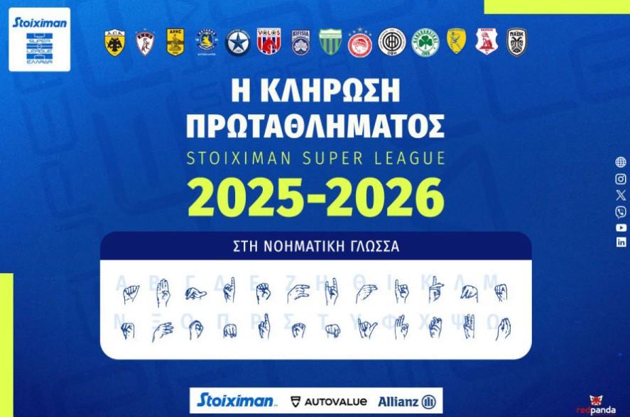 Παράλληλα, για πρώτη φορά, η Κλήρωση του Πρωταθλήματος Stoiximan Super League 2025-2026, θα αποδοθεί τηλεοπτικά και στην ελληνική νοηματική γλώσσα, δίνοντας έτσι την ευκαιρία και στους κωφούς συνανθρώπους μας να παρακολουθήσουν από τους τηλεοπτικούς δέκτες τη διαδικασία.