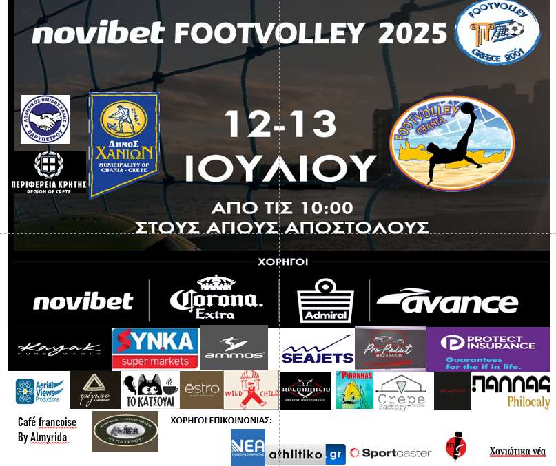 Στις εγκαταστάσεις των Αγίων Αποστόλων θα πραγματοποιηθεί και φέτος το τουρνουά Footvolley το οποόο διεξάγεται κάθε χρόνο στα Χανιά.