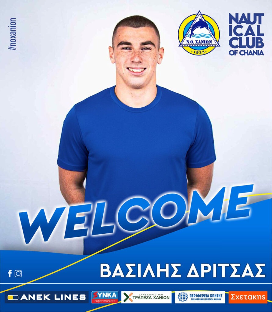 Ο Ναυτικός Ομιλος Χανίων ανακοινώνει την ένταξη του Βασίλη Δρίτσα στο ρόστερ της ανδρικής ομάδας υδατοσφαίρισης.