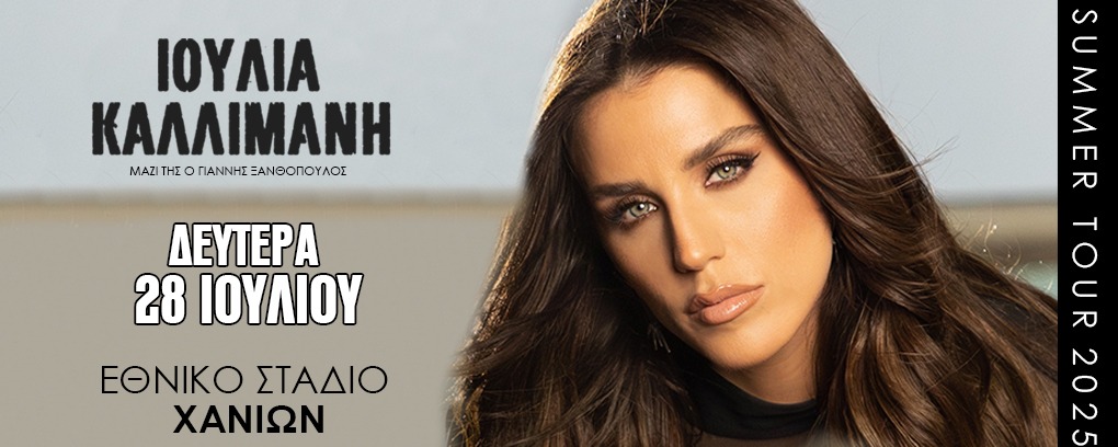 Μεγάλο μουσικό γεγονός ετοιμάζεται στα Χανιά, καθώς η Ιουλία Καλλιμάνη ετοιμάζεται να “ανεβάσει” το θερμόμετρο στο Εθνικό Στάδιο Χανίων, τη Δευτέρα 28 Ιουλίου, σε μια μοναδική συναυλία που διοργανώνει ο Άρης Σούδας και ο Απόλλωνας Αγίου Ιωάννη.