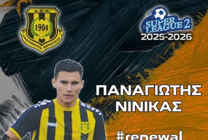 «Συνεχίζουμε μαζί! Η ΠΑΕ Αναγέννηση Καρδίτσας ανακοινώνει την ανανέωση της συνεργασίας της με τον ποδοσφαιριστή Παναγιώτη Νινίκα.