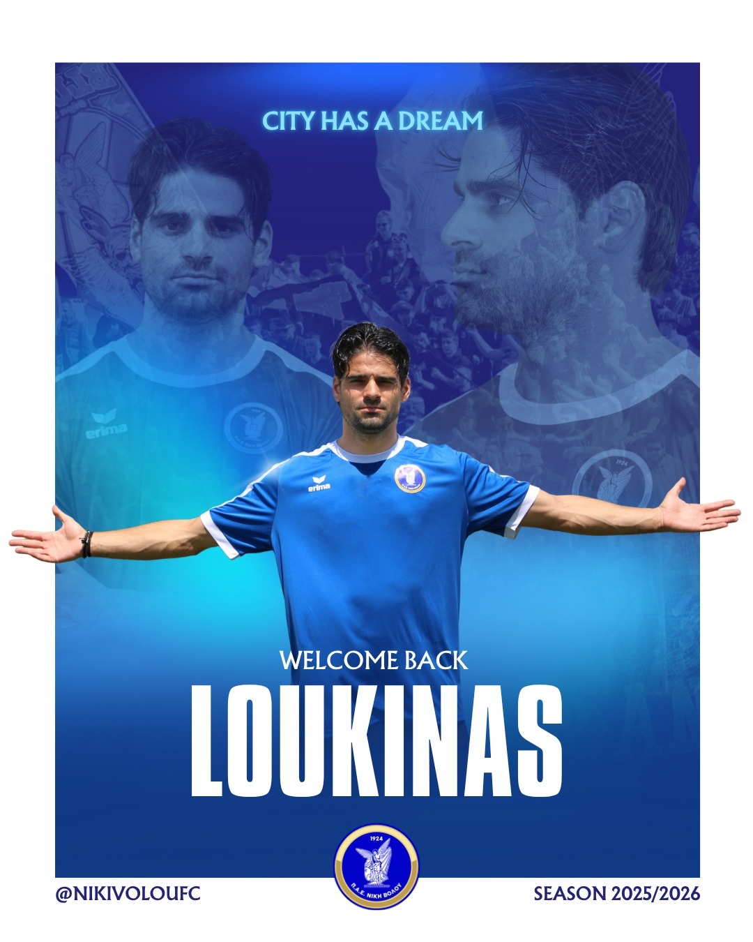 Η ΠΑΕ Νίκη Βόλου ανακοινώνει με ιδιαίτερη χαρά την απόκτηση του ποδοσφαιριστή Γιάννη Λουκίνα.