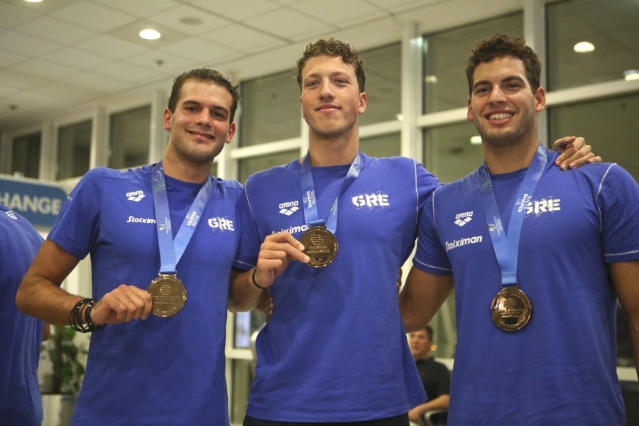 Υποδοχή ανάλογη με εκείνη των «χρυσών» κοριτσιών της Εθνικής μας ομάδας Υδατοσφαίρισης, το πρωί της Παρασκευής (25/7), γνώρισαν και τα μέλη της αποστολής του αντιπροσωπευτικού μας συγκροτήματος των Ανδρών, που επέστρεψαν με το χάλκινο μετάλλιο από το Παγκόσμιο πρωτάθλημα της Σιγκαπούρης, το βράδυ της ίδιας ημέρας.