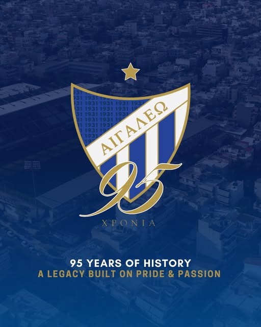Με περηφάνια παρουσιάζουμε το επετειακό σήμα της ΠΑΕ Αιγάλεω για τη σεζόν 2025/26, μια χρονιά-ορόσημο που σηματοδοτεί 95 χρόνια ιστορίας, αγώνων και πίστης.