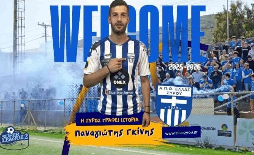 Η οικογένεια της ΕΛΛΑΣ ΣΥΡΟΥ καλωσορίζει τον Παναγιώτη Γκίνη στο νησί και του εύχεται υγεία, δύναμη και πολλές επιτυχίες με τη φανέλα της ομάδας μας!
