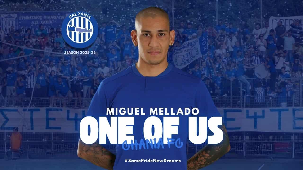 Η ΠΑΕ Χανιά ανακοινώνει την έναρξη της συνεργασίας της με τον ποδοσφαιριστή Miguel Ángel Mellado.
