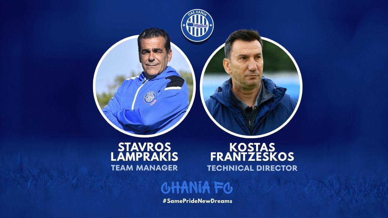 Η ΠΑΕ ΧΑΝΙΑ ανακοινώνει την ένταξη δύο έμπειρων στελεχών στο οργανόγραμμα της ομάδας μας, με τον Κώστα Φραντζέσκο να αναλαμβάνει καθήκοντα Τεχνικού Διευθυντή και τον Σταύρο Λαμπράκη να συνεχίζει για τέταρτη χρονιά στο δυναμικό του συλλόγου από τη θέση του Team Manager.