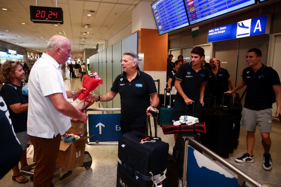 Ο πρόεδρος της Κολυμβητικής Ομοσπονδίας Ελλάδας, Κυριάκος Γιαννόπουλος ήταν στο «Ελευθέριος Βενιζέλος» να σφίξει το χέρι των παιδιών, να τους δώσει «συγχαρητήρια», να τους υποδεχθεί και να τους ευχαριστήσει.