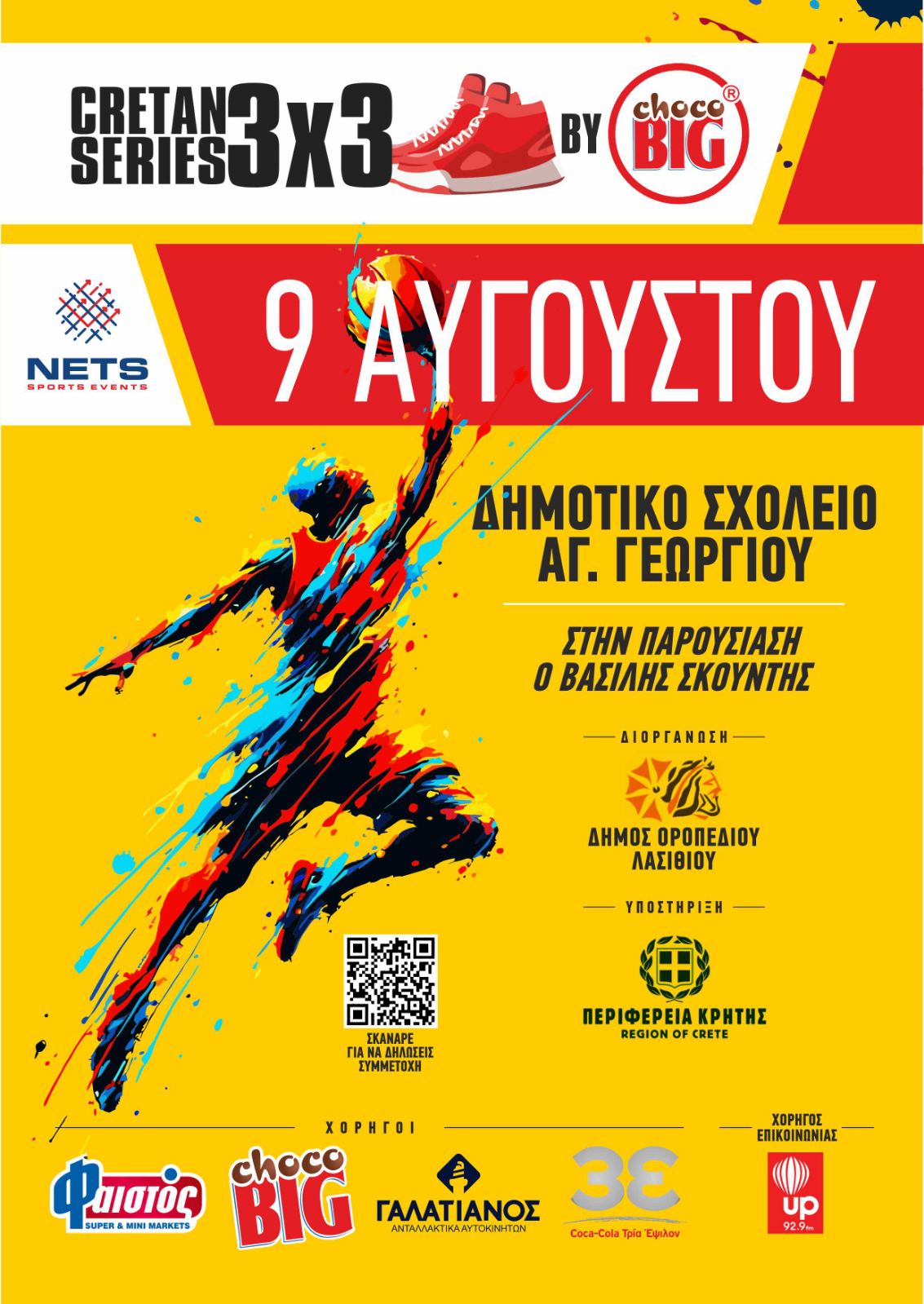 Το έβδομο κατά σειρά Τουρνουά 3x3 Basketball Cretan Series by choco BIG συνδιοργανώνεται από τον Δήμο Οροπεδίου Λασιθίου, την Περιφέρεια Κρήτης και τη Nets Sports Events.