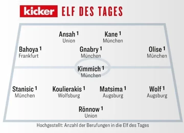 Ο κεντρικός αμυντικός της Βόλφσμπουργκ ήταν ο μοναδικός παίκτης των «λύκων» που σύμφωνα με το «Kicker» είχε τέτοια απόδοση που τον τοποθέτησε στους καλύτερους «11».