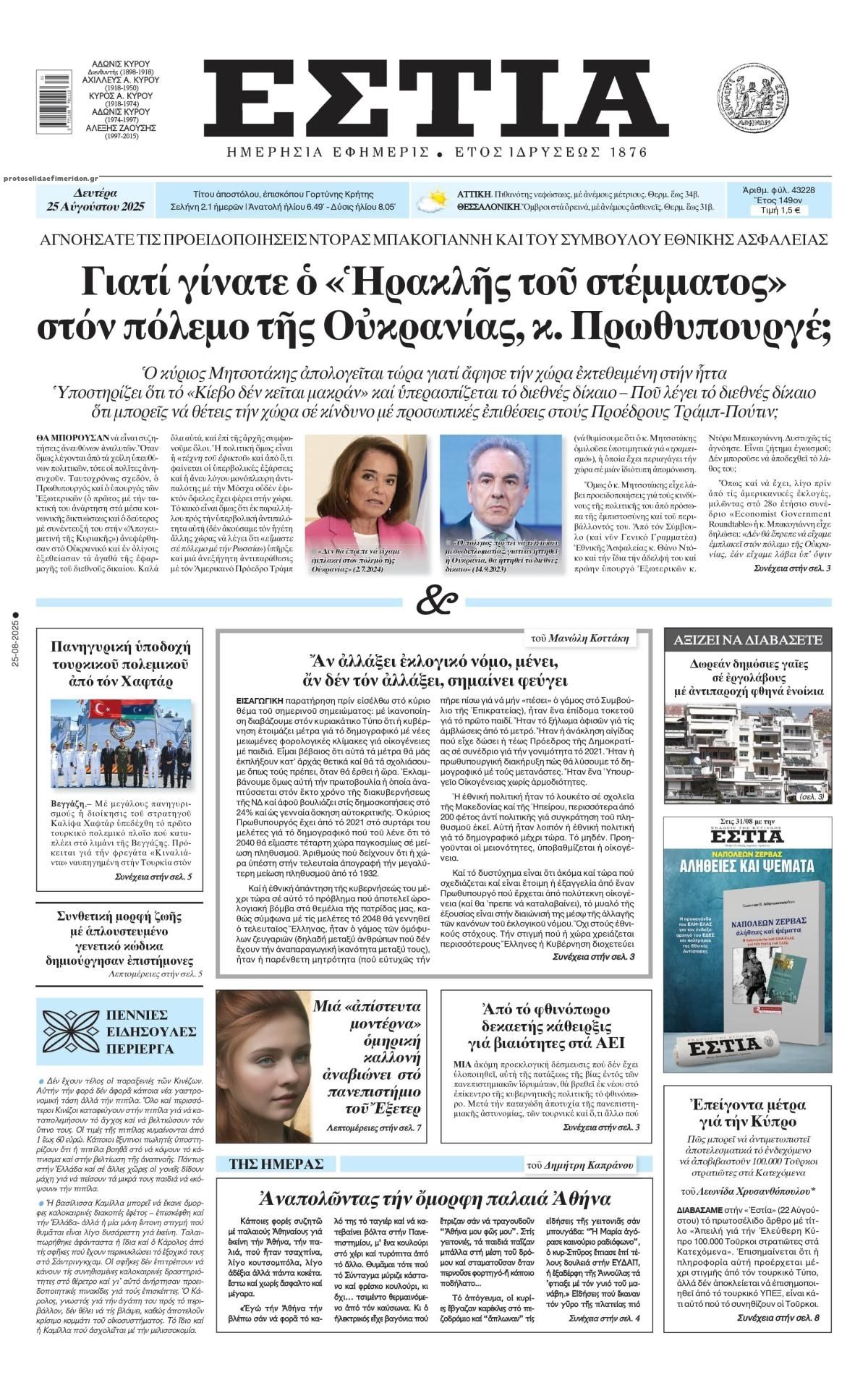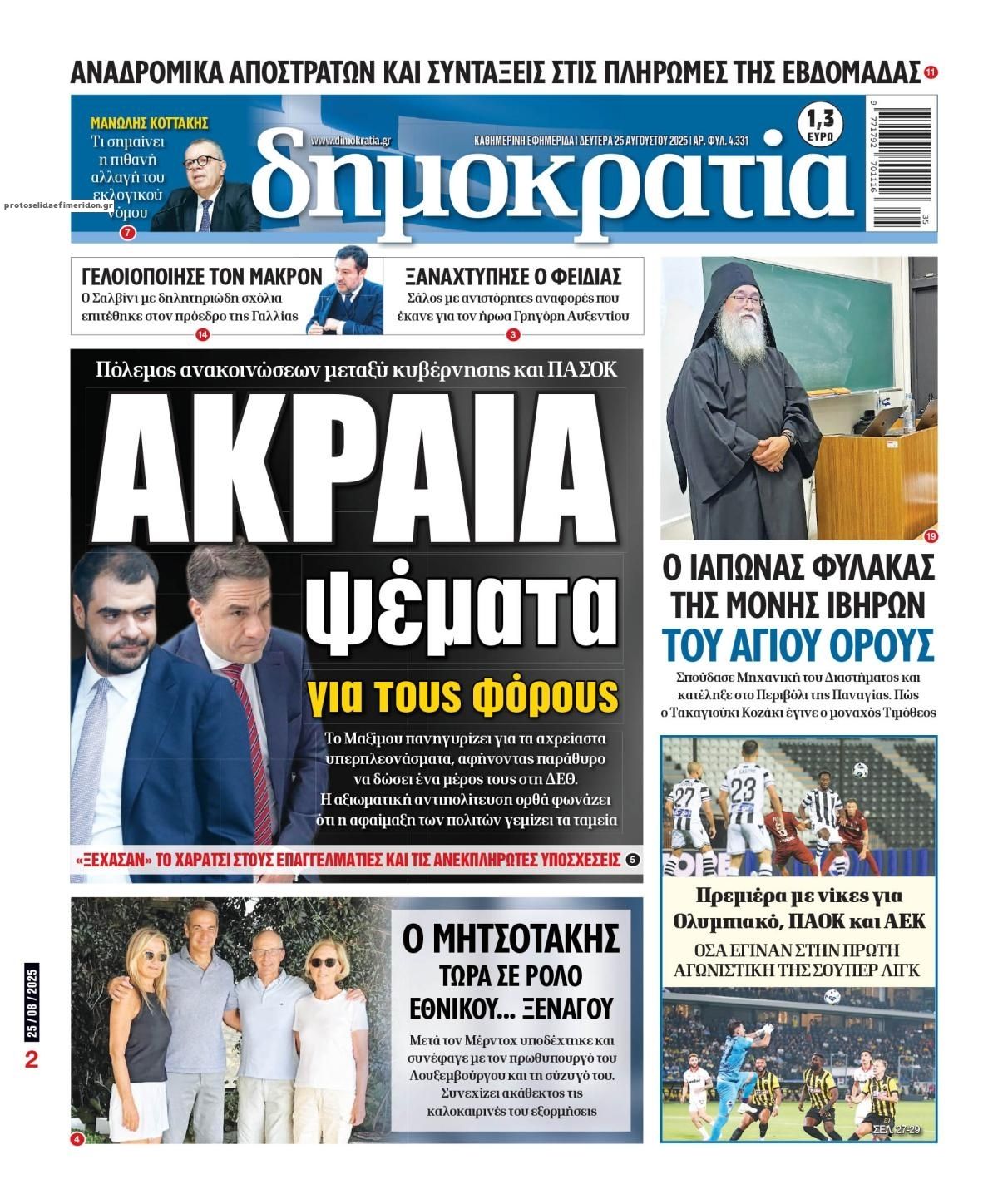 Ο πολιτικός τύπος της ημέρας