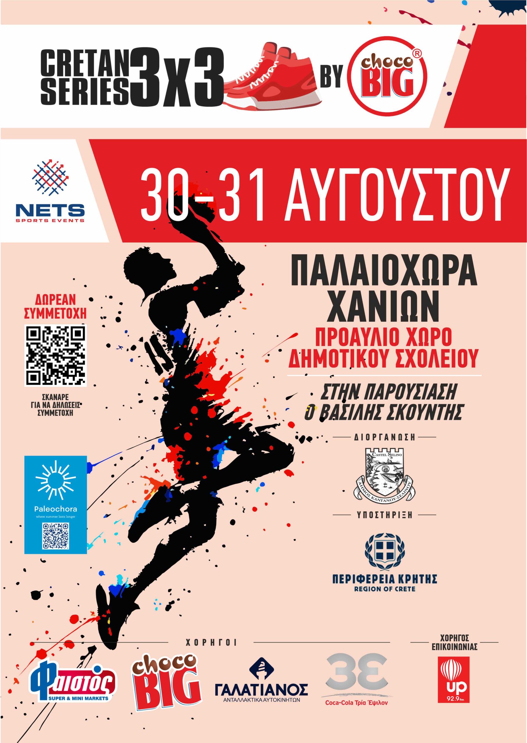 Τα Τουρνουά 3×3 Basketball Cretan Series by Choco BIG αποτελούν μια πολύ ενδιαφέρουσα, ανταγωνιστική, δελεαστική και φαντασμαγορική διοργάνωση, που προσφέρει την ευκαιρία της δωρεάν συμμετοχής σε παίκτες και παίκτριες απ’ όλη τη γκάμα των ηλικιών.