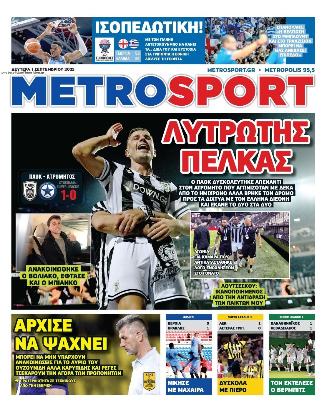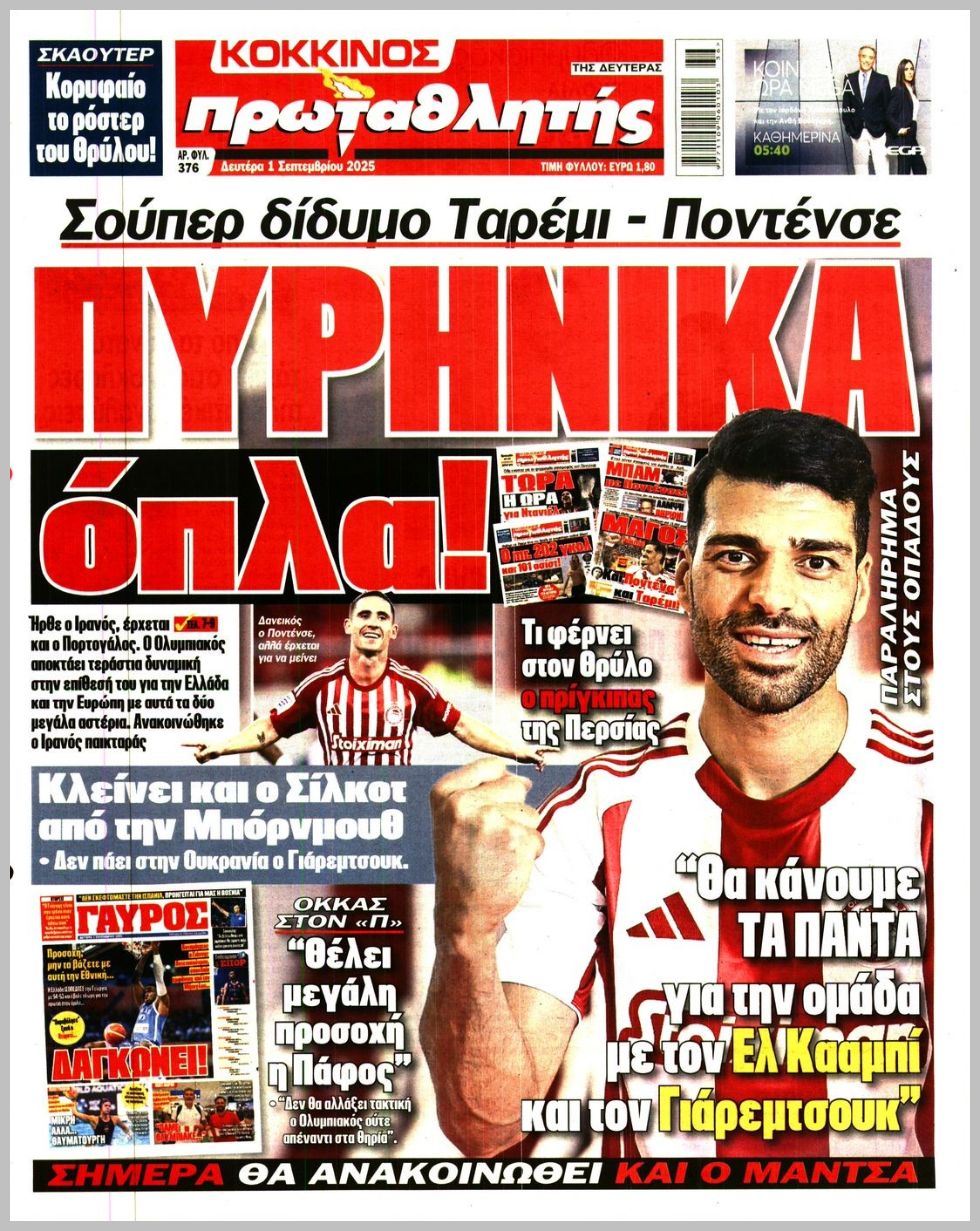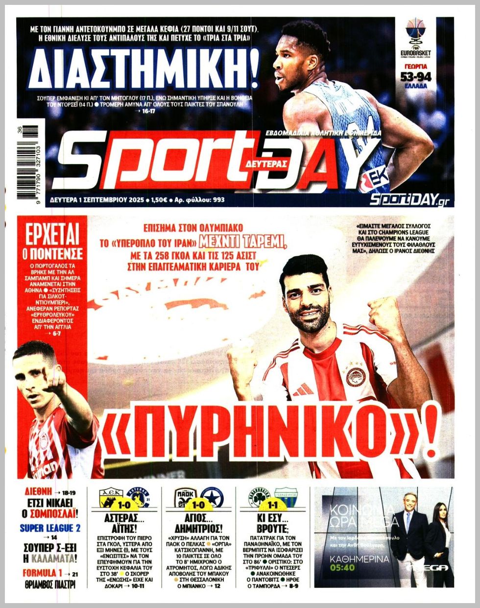 Τα αθλητικά πρωτοσέλιδα της Δευτέρας (1/9)