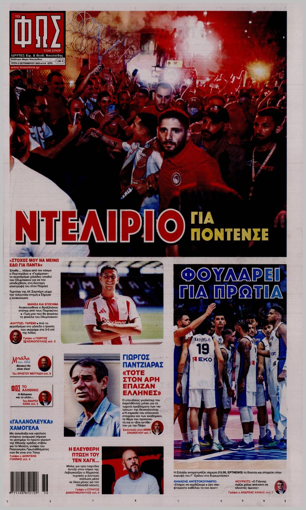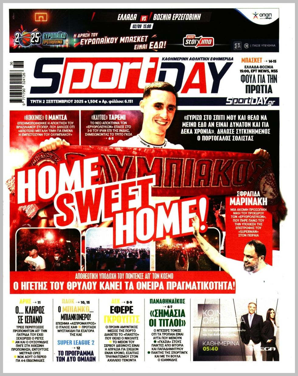 Τα αθλητικά πρωτοσέλιδα της Τρίτης (2/9)