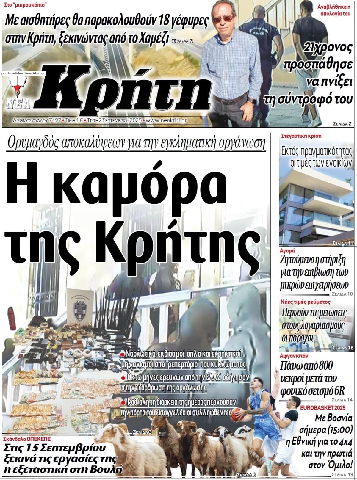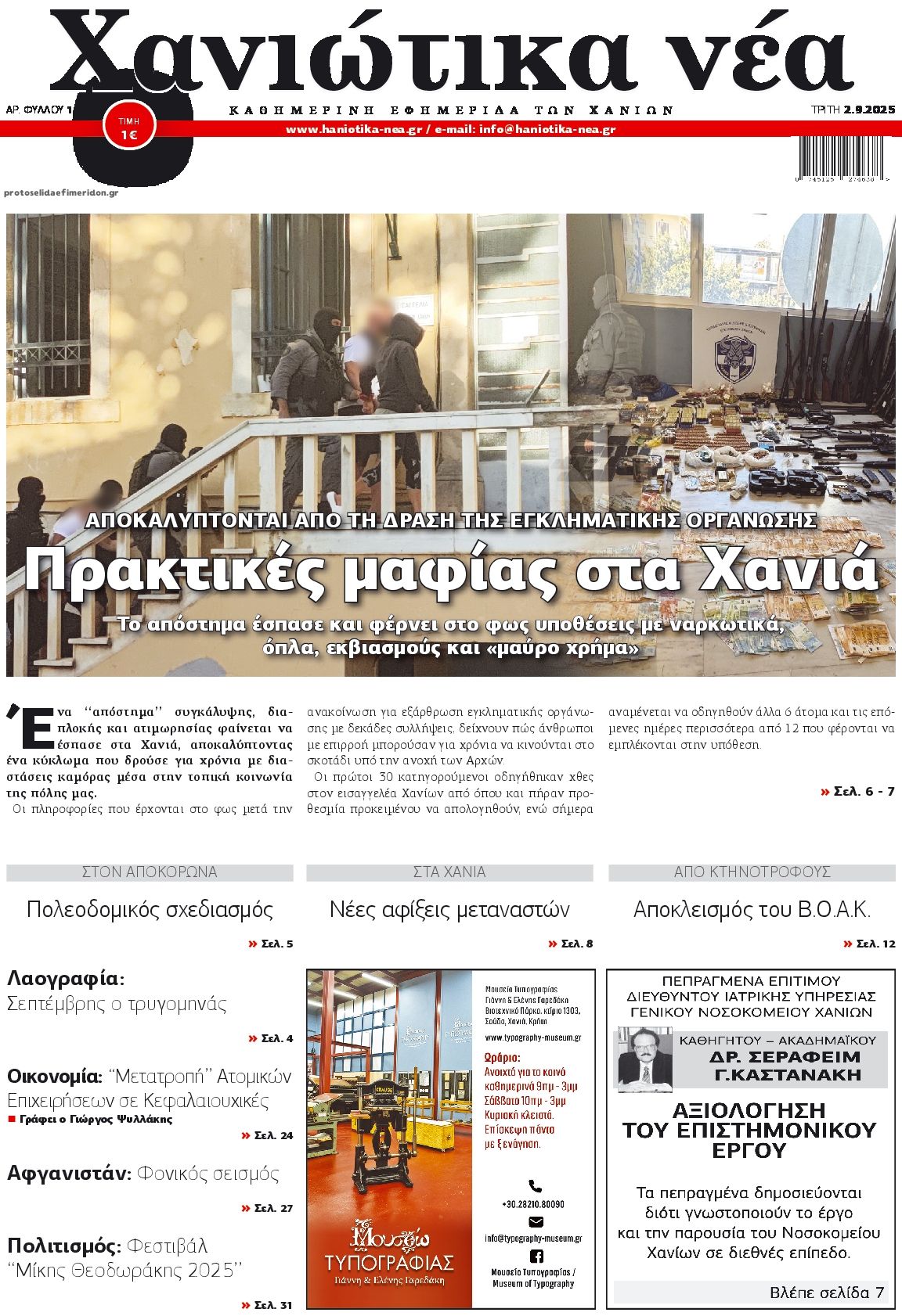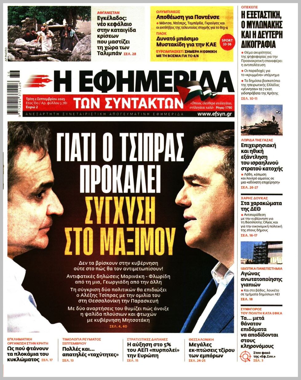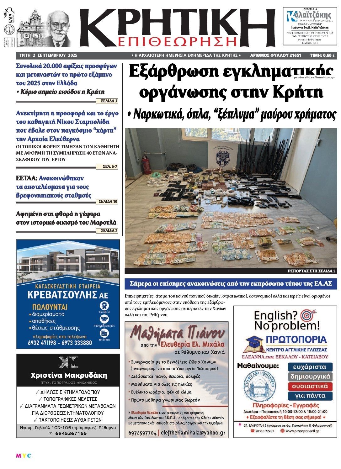 Τα πρωτοσέλιδα της Τρίτης (2/9) σε Κρήτη και Αθήνα