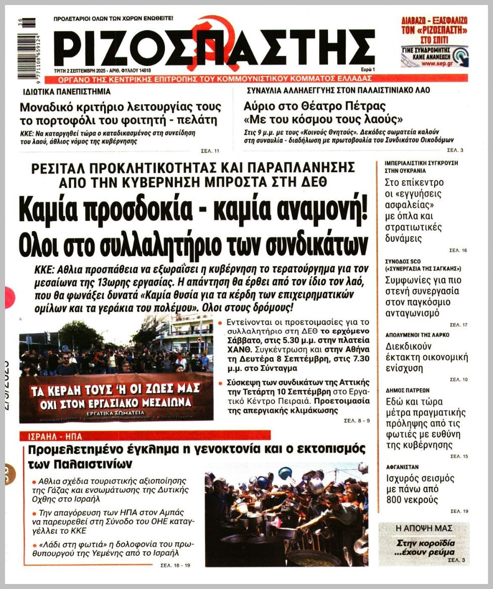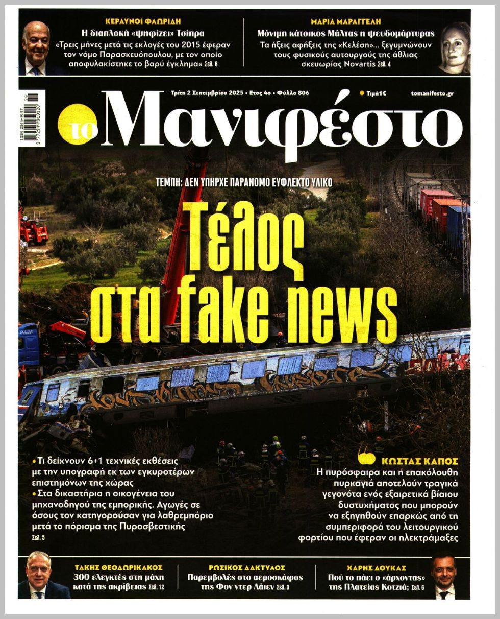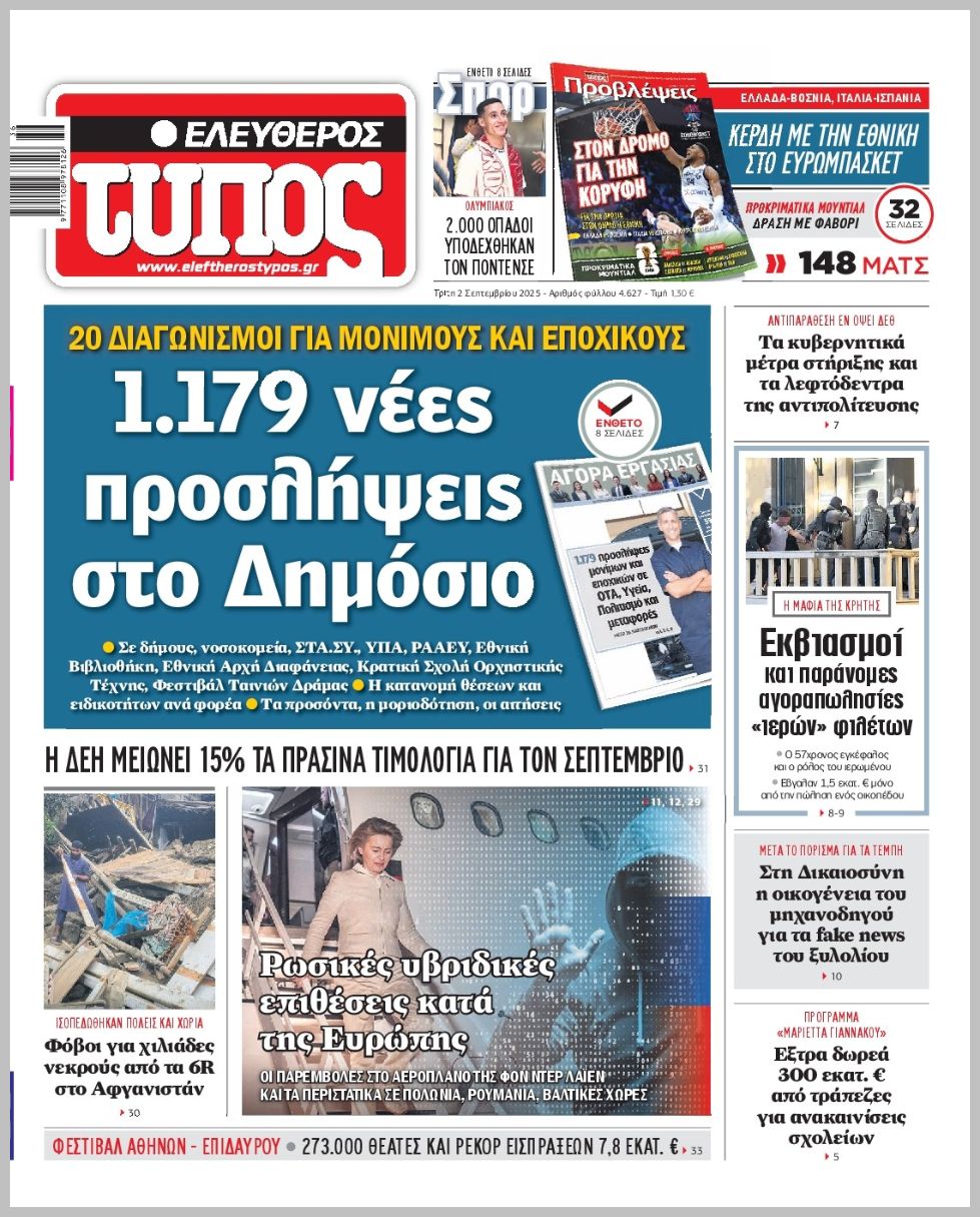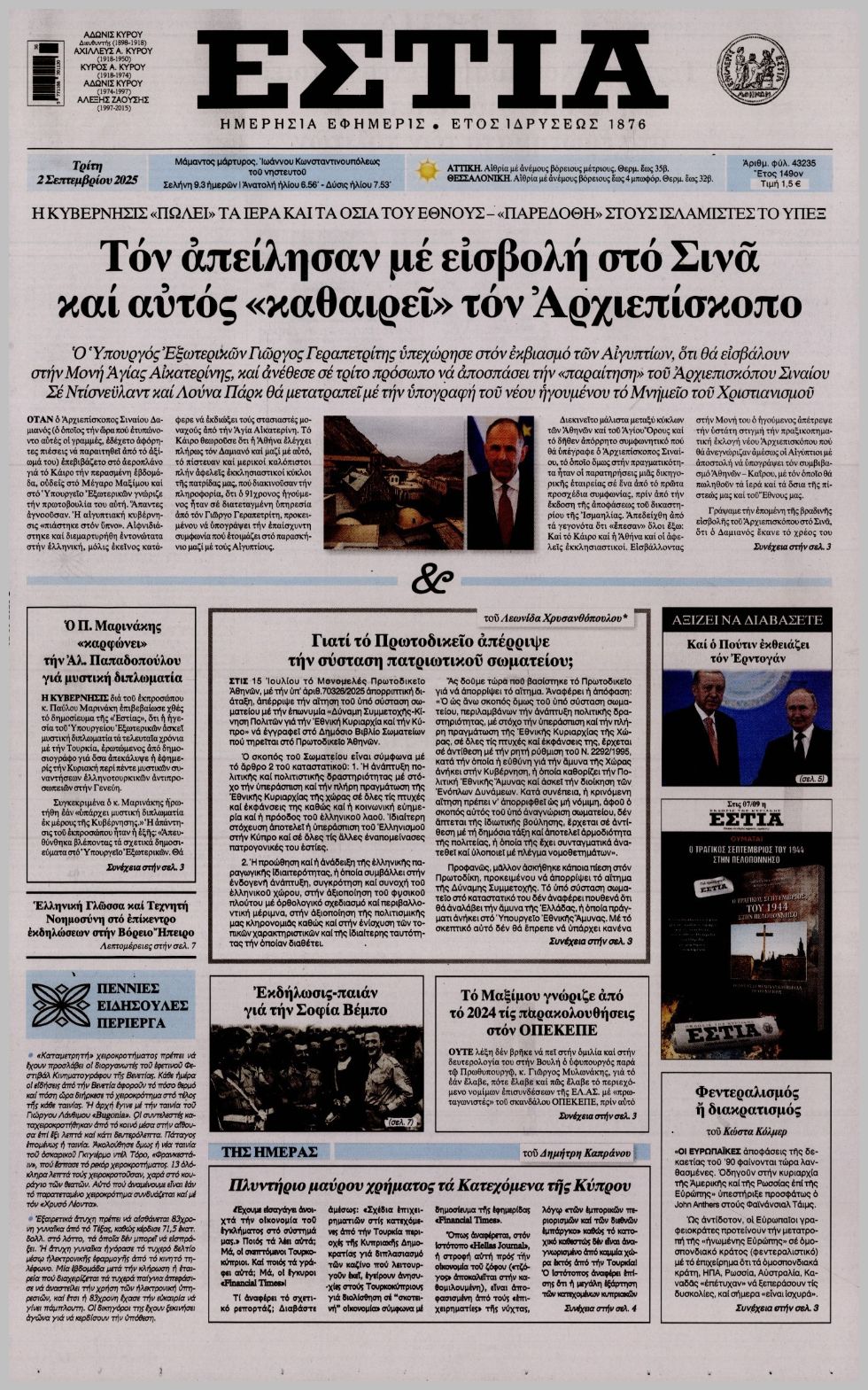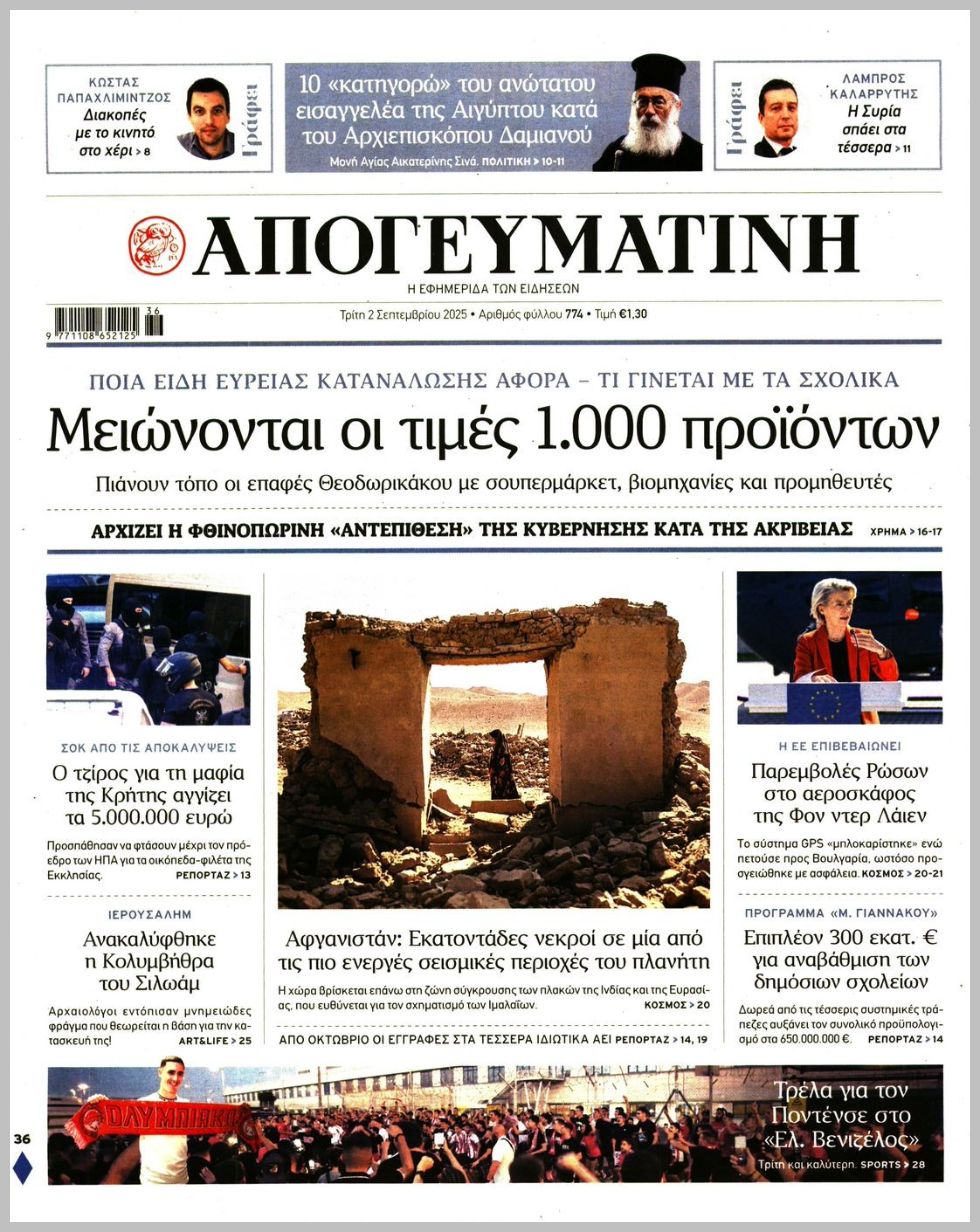 Τα πρωτοσέλιδα της Τρίτης (2/9) σε Κρήτη και Αθήνα