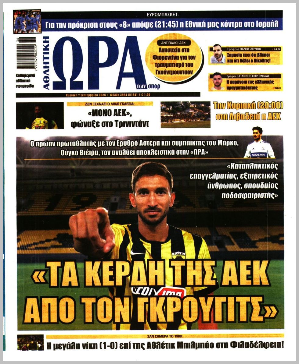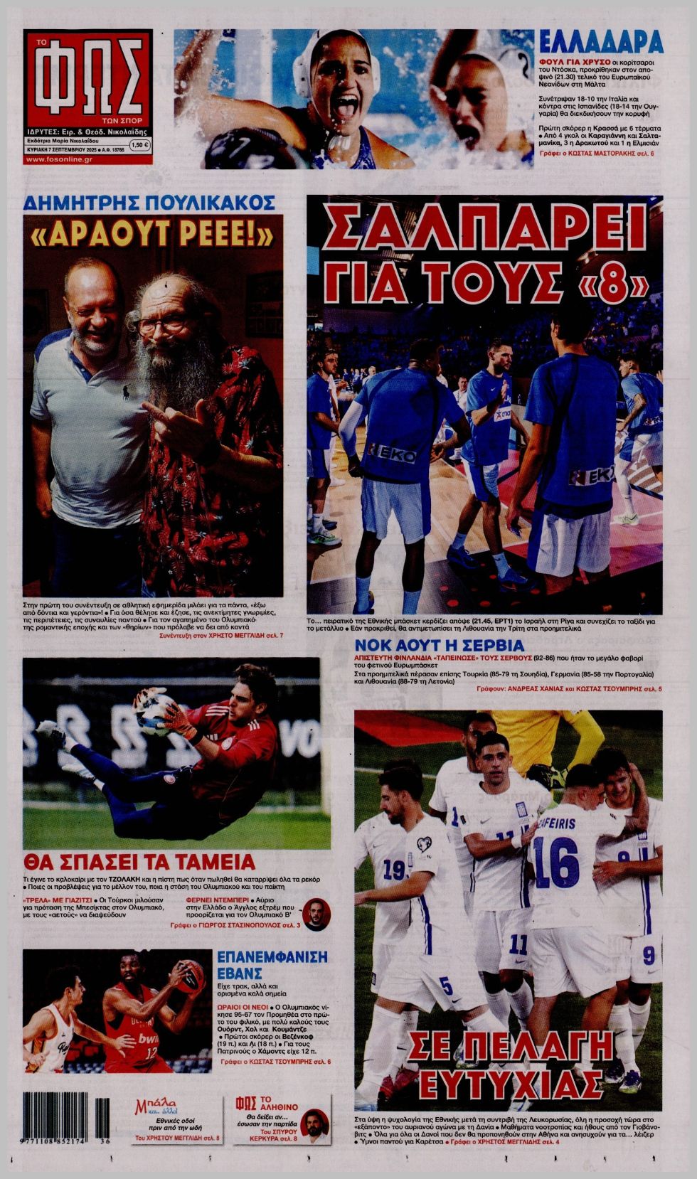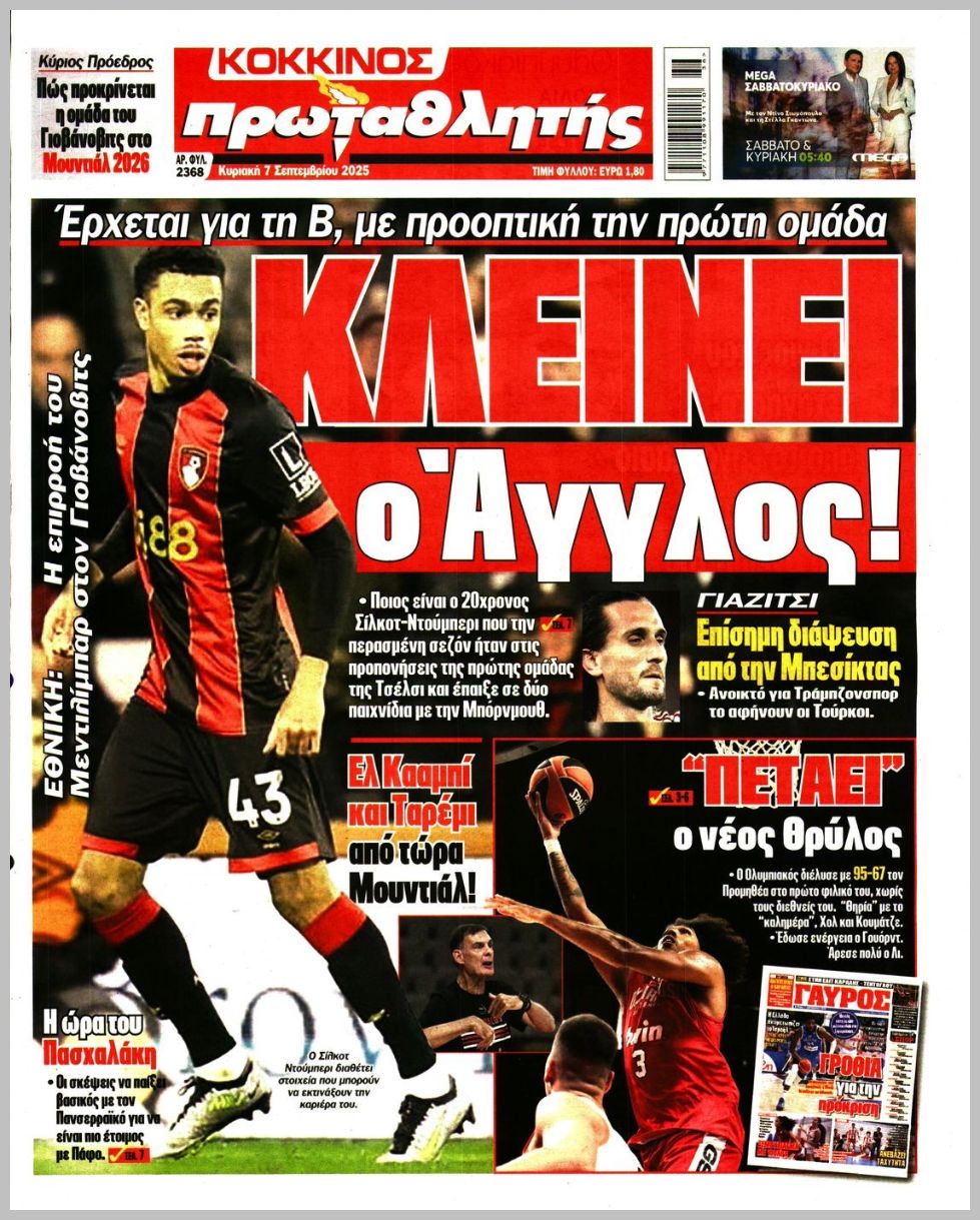 Τα αθλητικά πρωτοσέλιδα της Κυριακής (7/9)