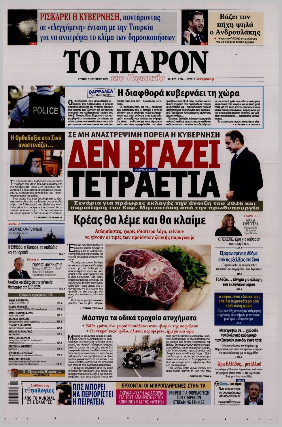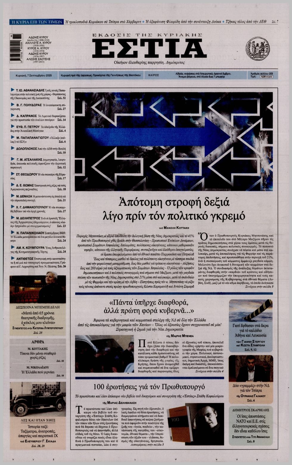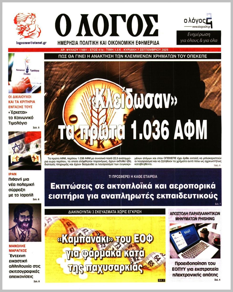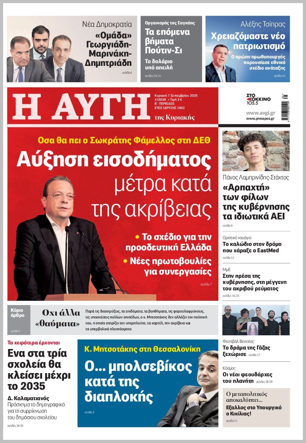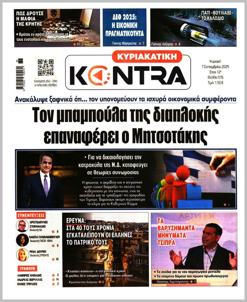 Τα πρωτοσέλιδα των πολιτικών εφημερίδων της Κυριακής (7/9)