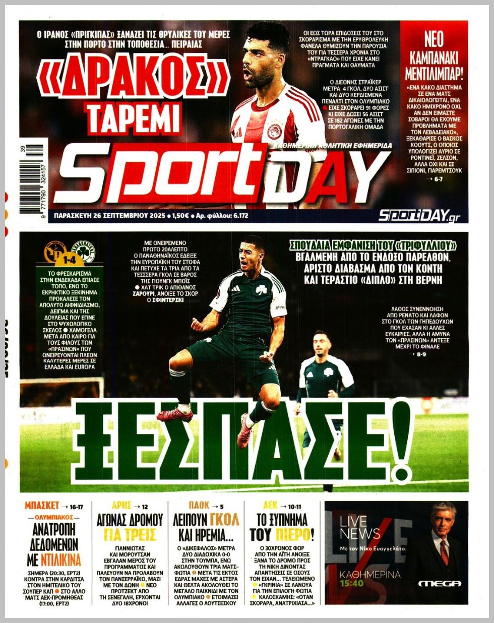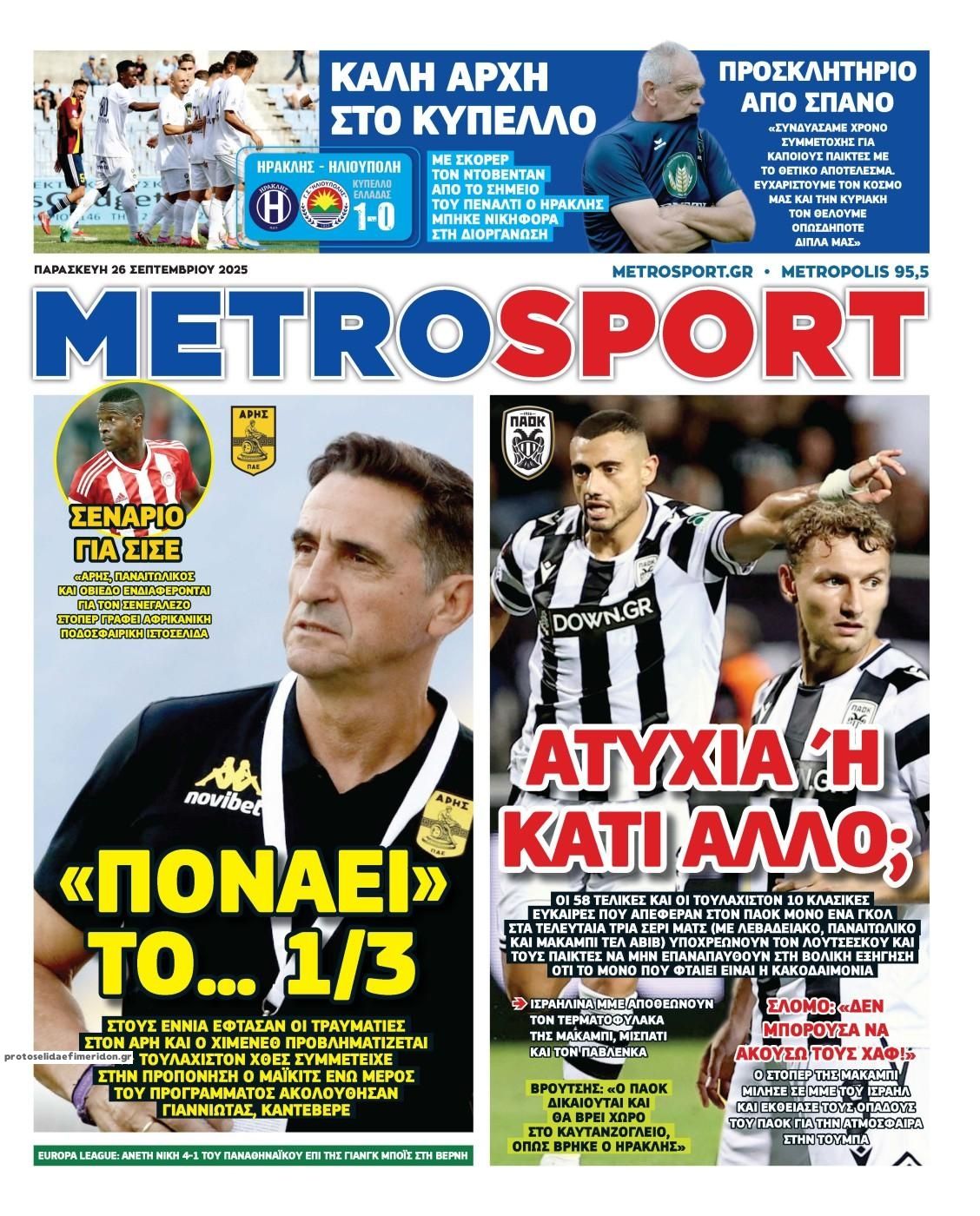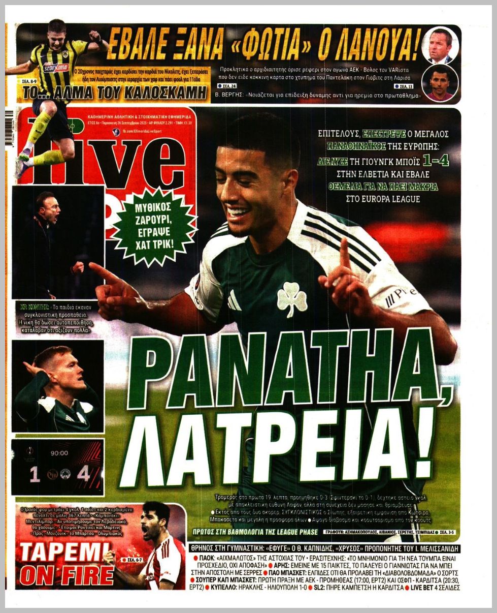 Τα αθλητικά πρωτοσέλιδα της Παρασκευής (26/9)