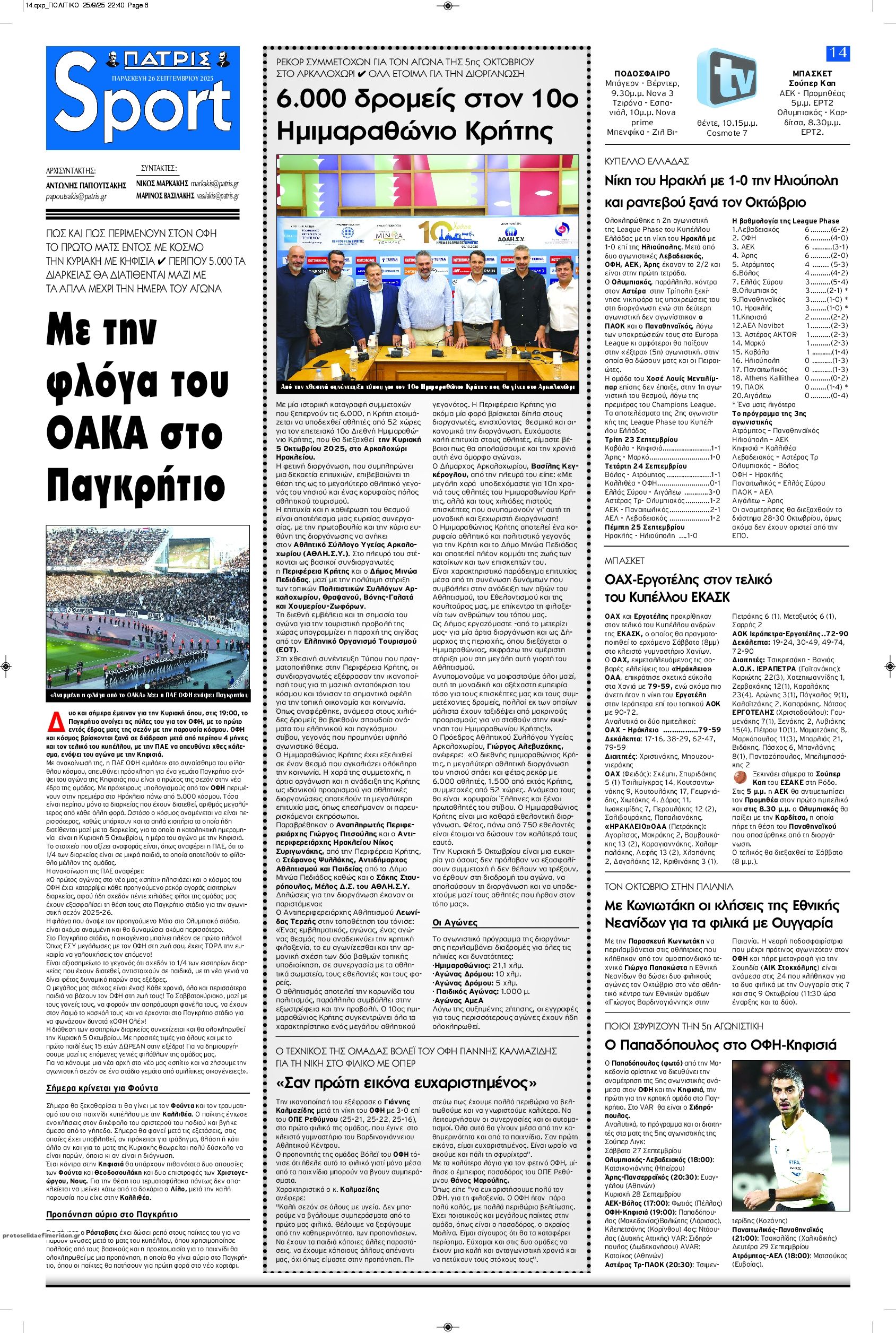Live: Οι αγώνες των Χανίων, Γ’ Εθνικής και Α’ ΕΠΣΧ