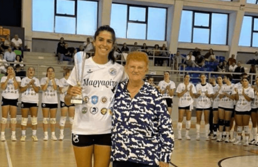 Η αρχηγός της ομάδας βόλει γυναικών του ΟΦΗ, Μαρτίνα Γκουασταβίνο, παραλαμβάνει το Κύπελλο, για την κατάκτηση της πρώτης θέσης στο δυνατό τουρνουά που διοργάνωσε ο Φοίβος Μελισσίων, στη μνήμη της αθλήτριας Μαργαρίτας Οικονομοπούλου.