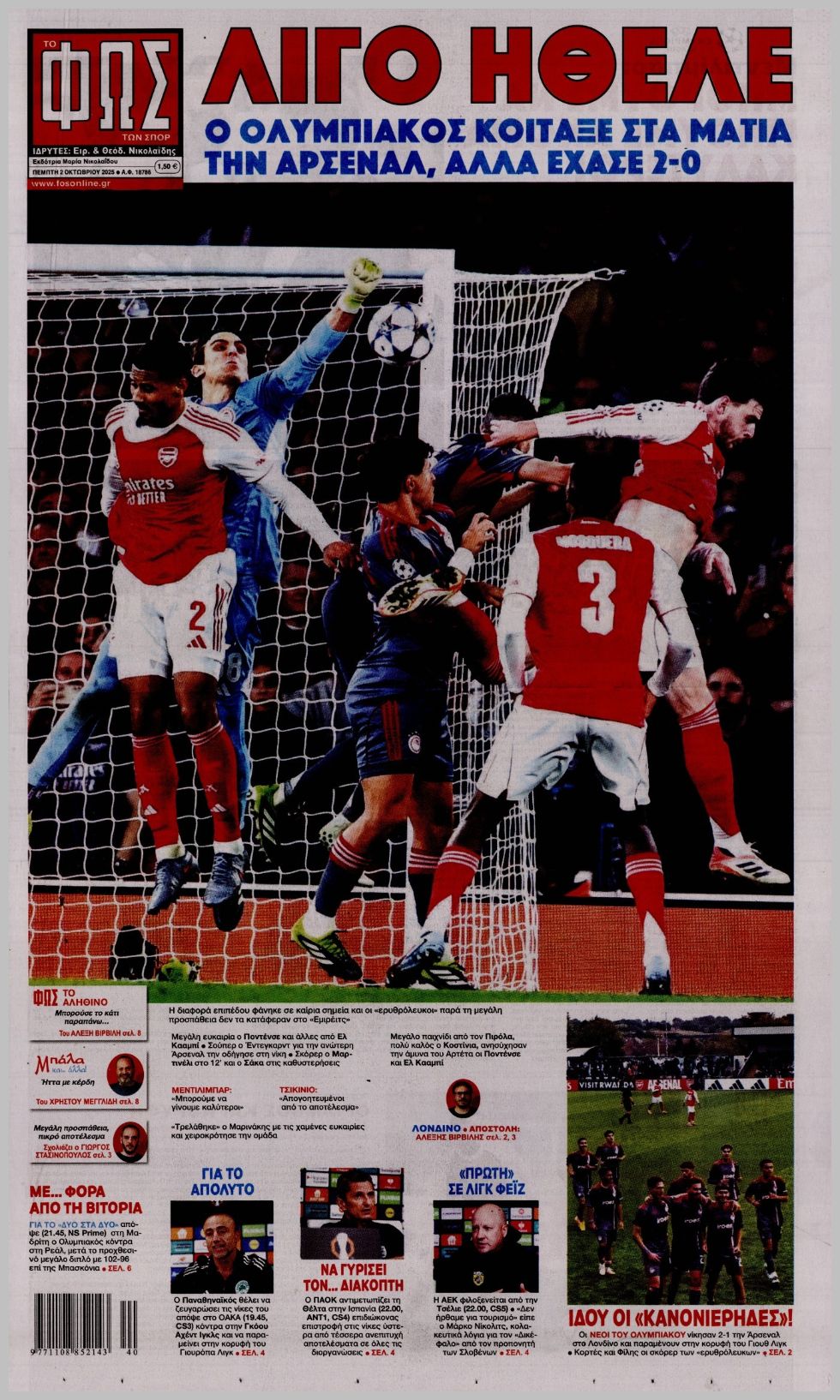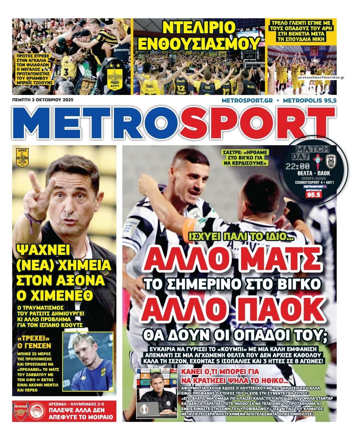 Τα αθλητικά πρωτοσέλιδα της Πέμπτης (2/10)