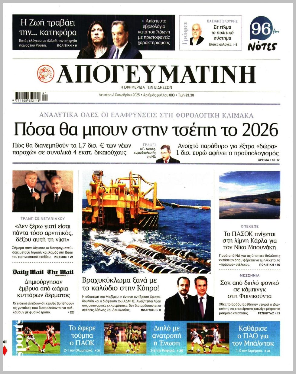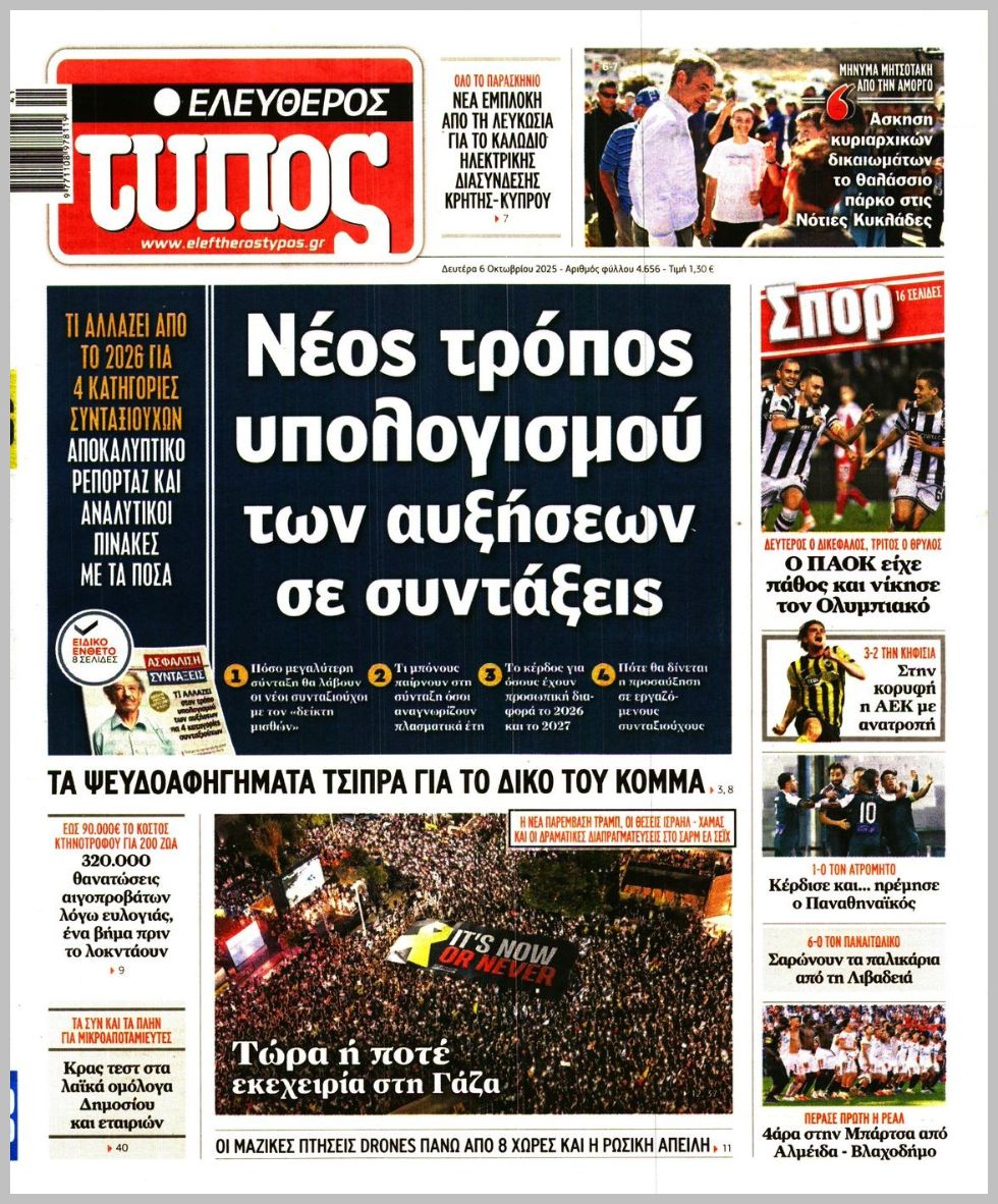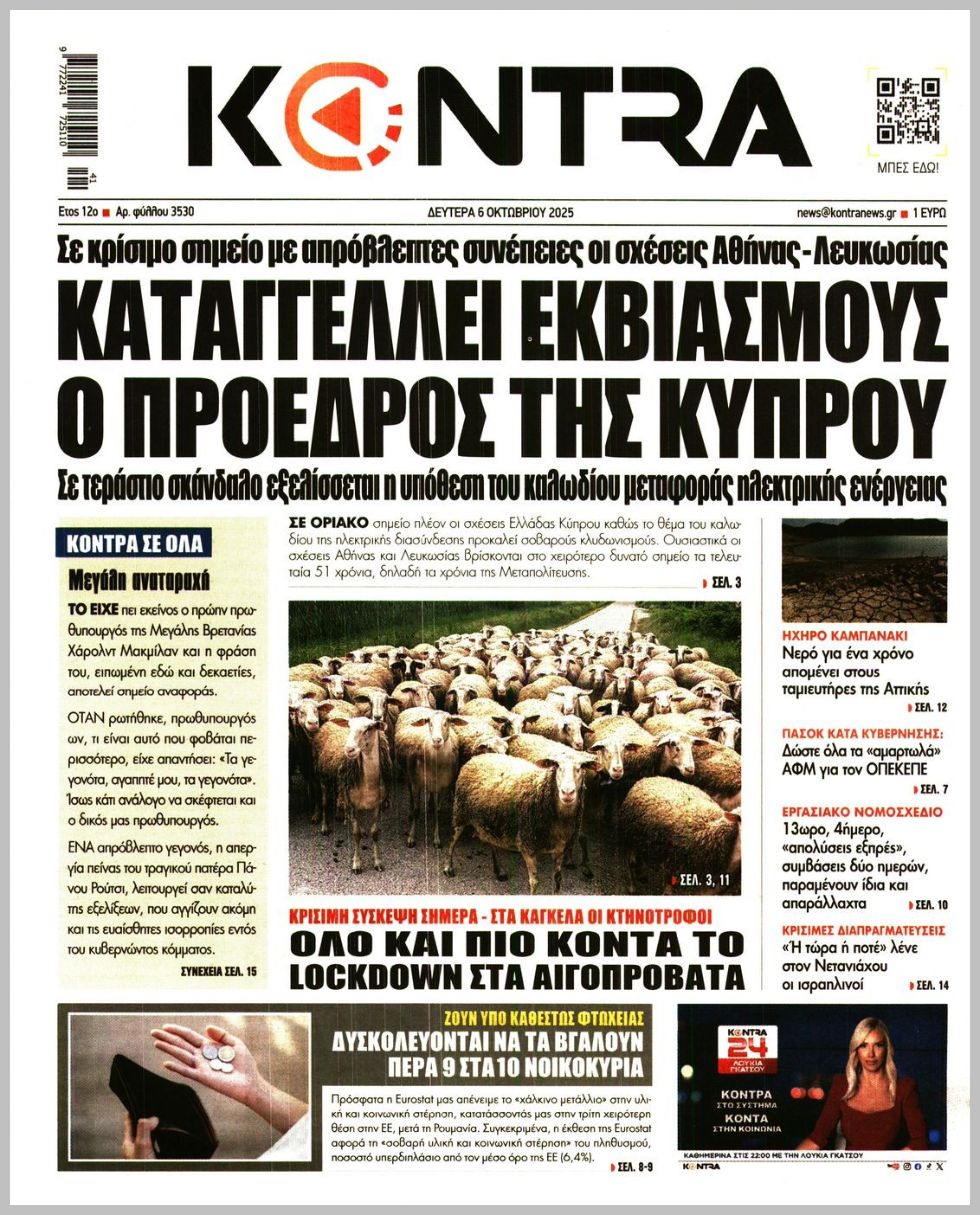 Τα πρωτοσέλιδα της Δευτέρας (6/10) σε Κρήτη και Αθήνα