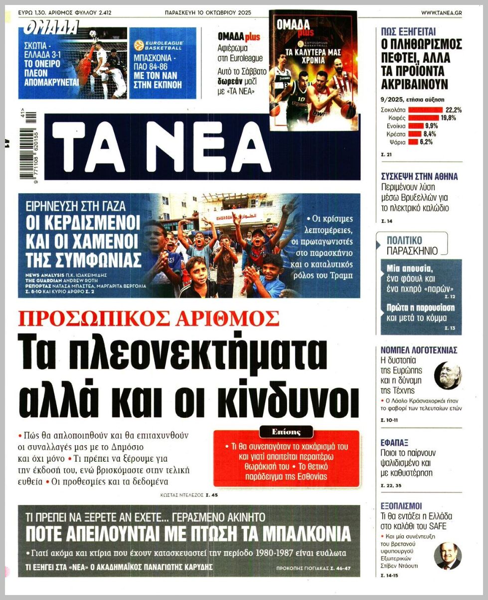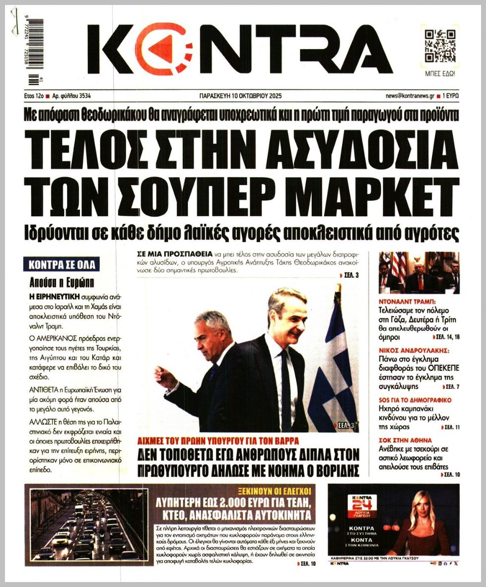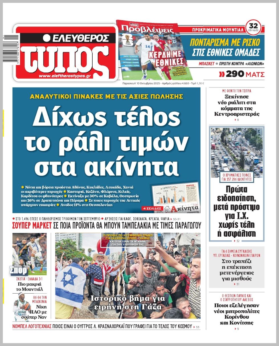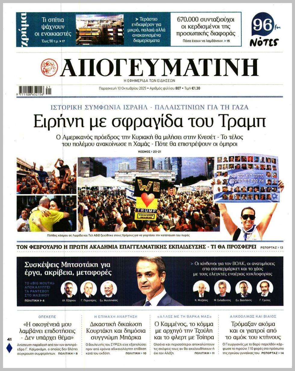 Τα πρωτοσέλιδα της Παρασκευής (10/10) σε Κρήτη και Αθήνα
