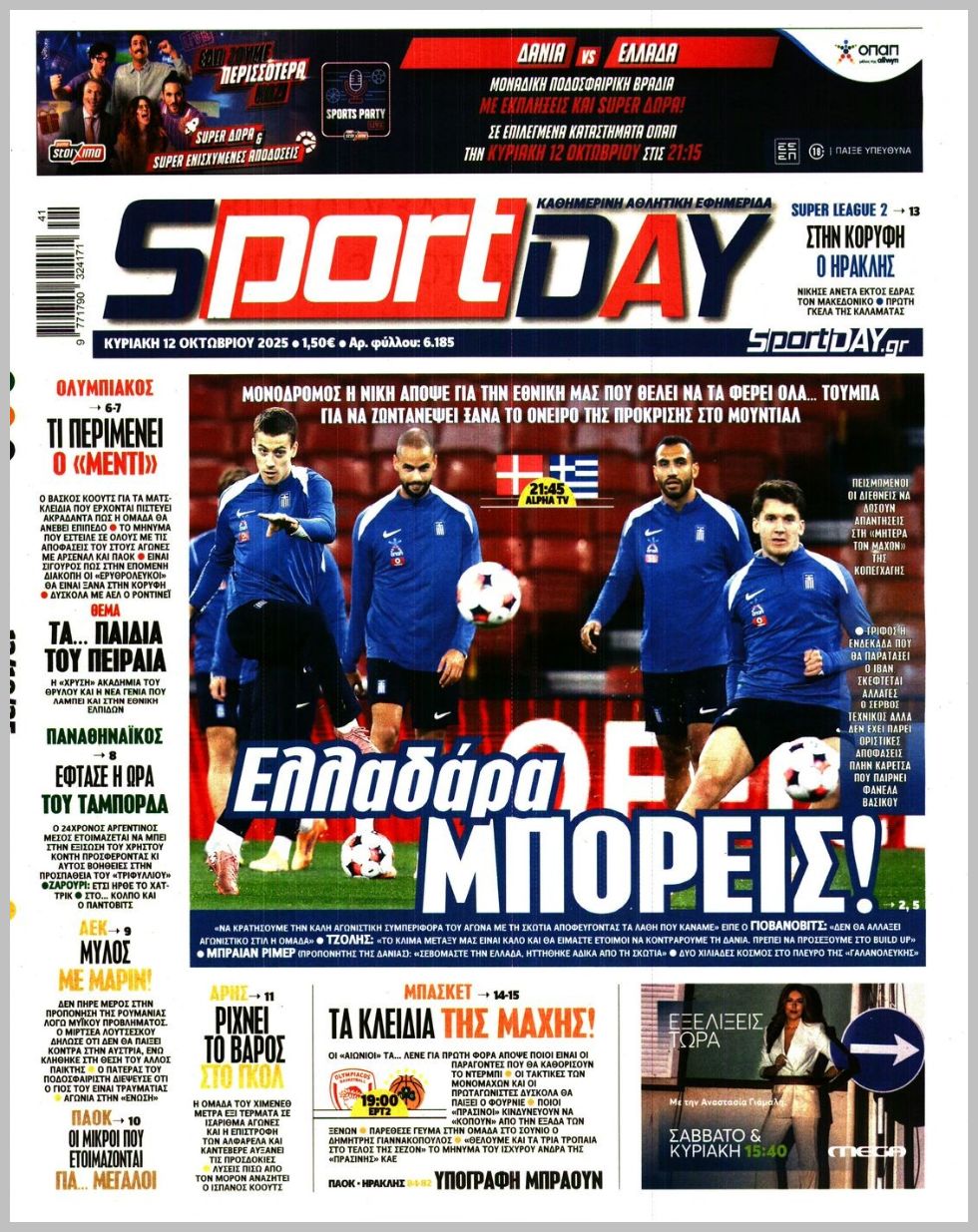 Τα αθλητικά πρωτοσέλιδα της Κυριακής (12/10)