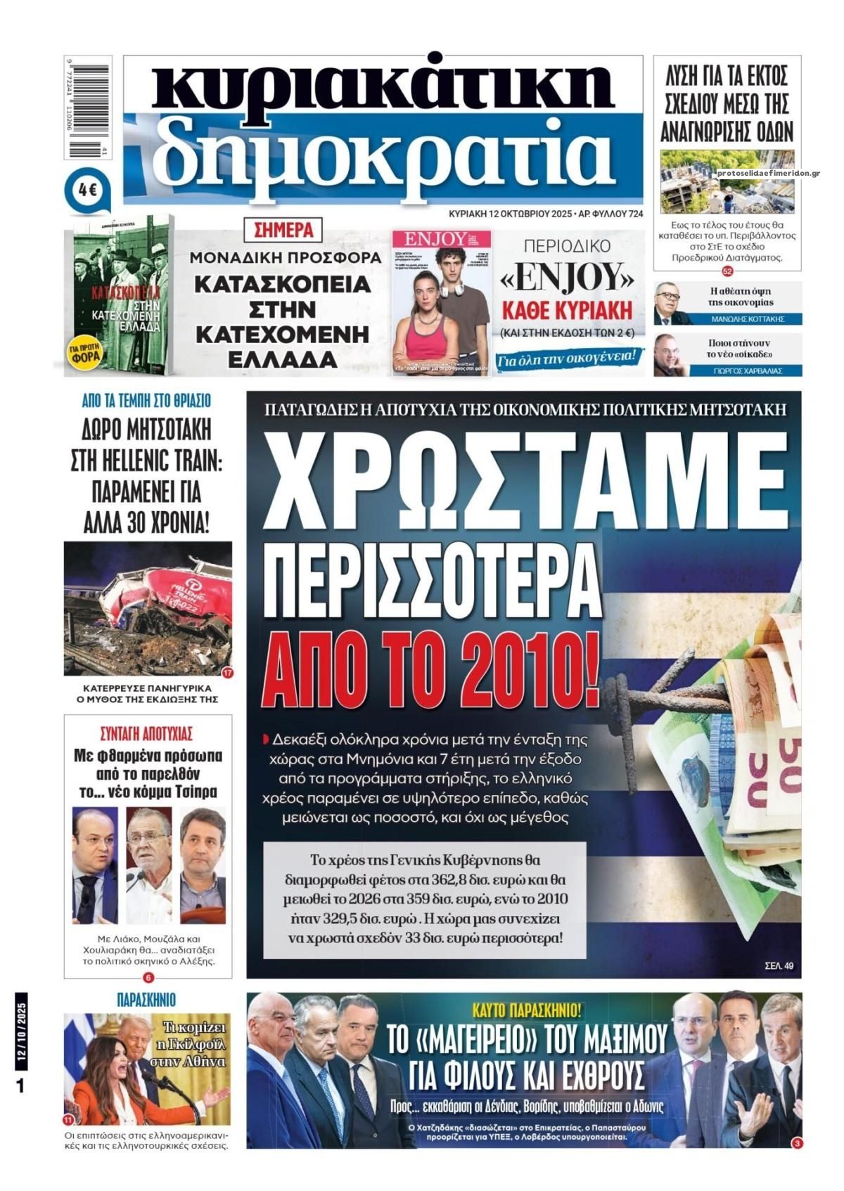 Τα πρωτοσέλιδα των Κυριακάτικων εφημερίδων (12/10)