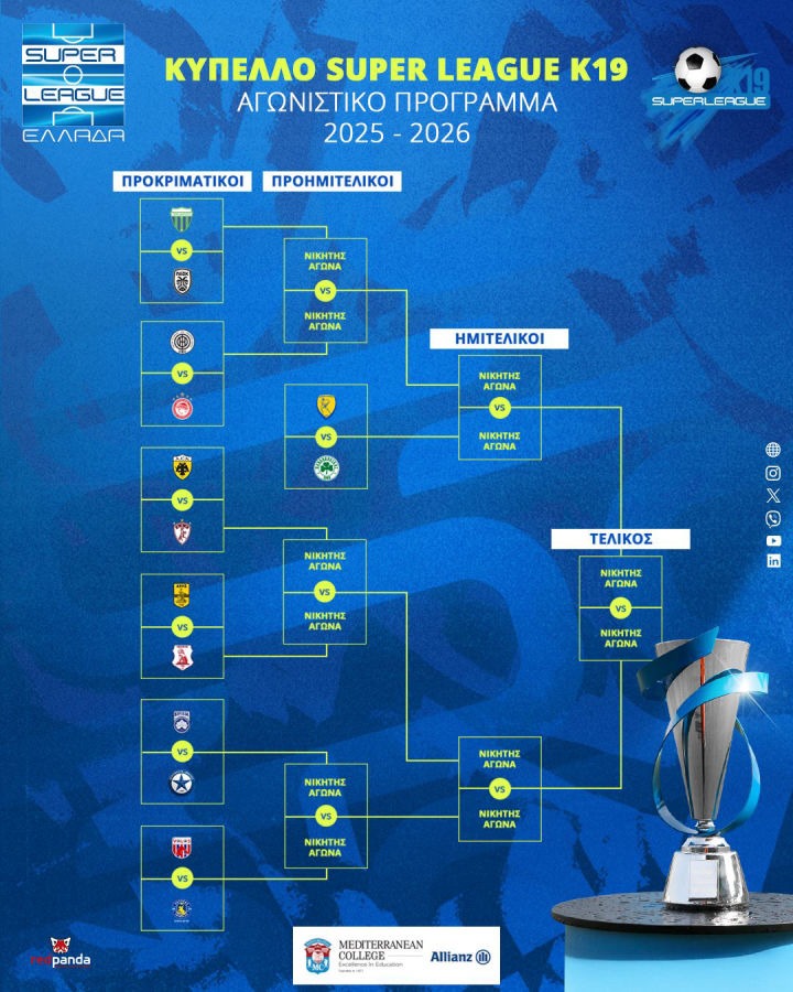 Σήμερα, Δευτέρα 13 Οκτωβρίου 2025, στα γραφεία της Super League, πραγματοποιήθηκε η κλήρωση του Κυπέλλου Super League K19 για την αγωνιστική περίοδo 2025-26 και την παρακολούθησαν με φυσική παρουσία, αλλά και διαδικτυακά, εκπρόσωποι των Π.Α.Ε. Μελών της Super League.