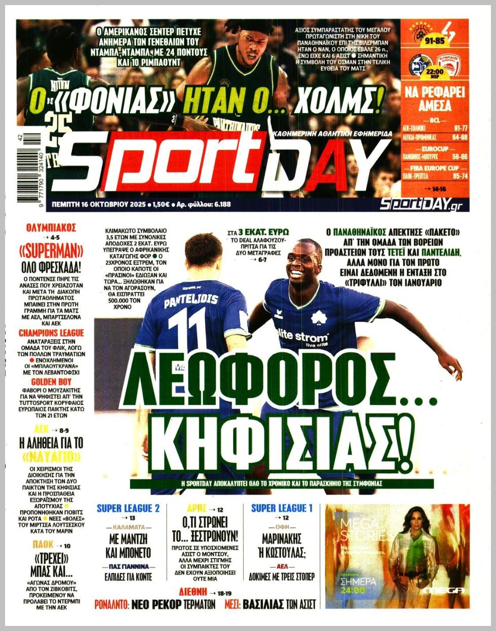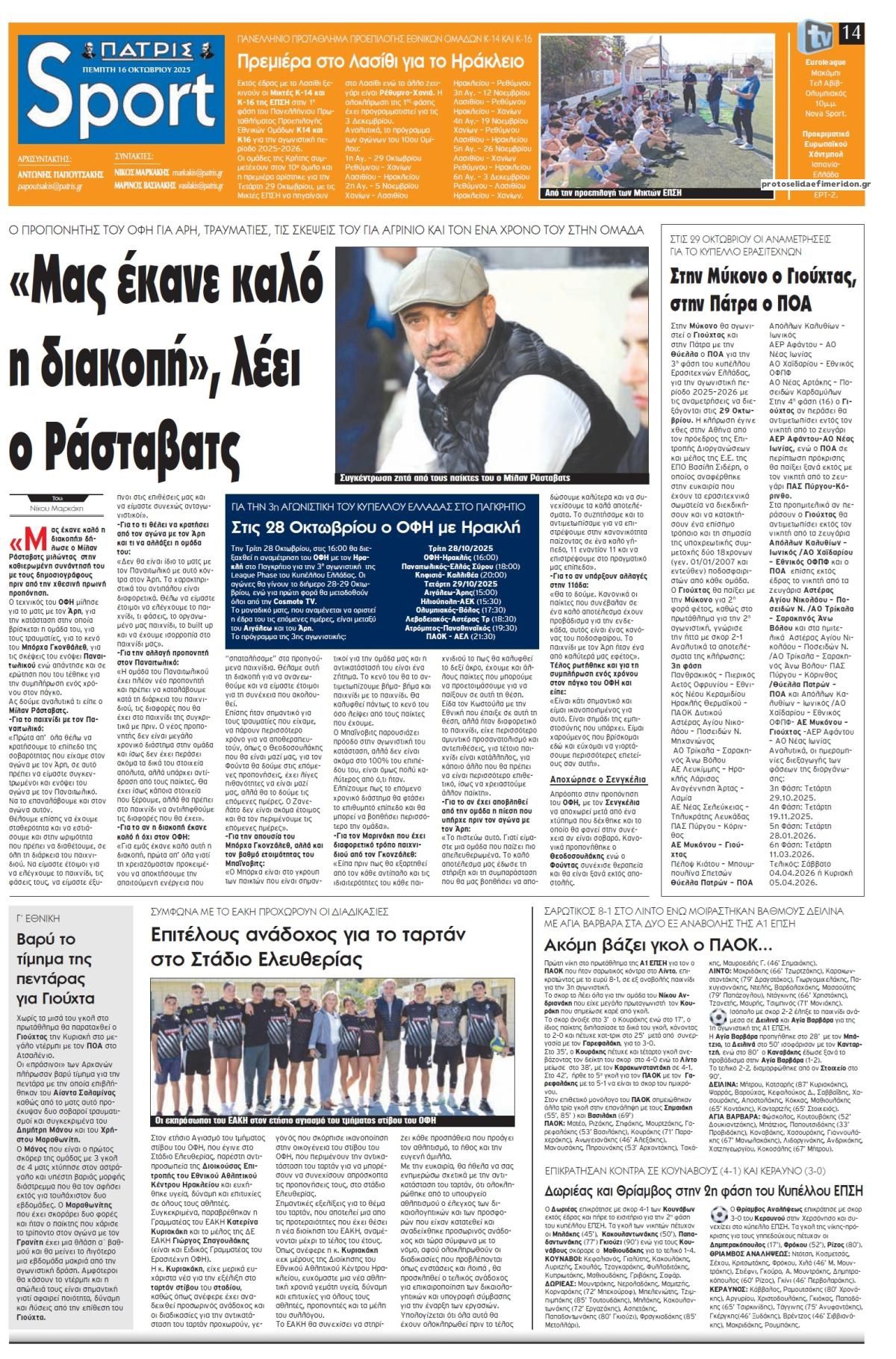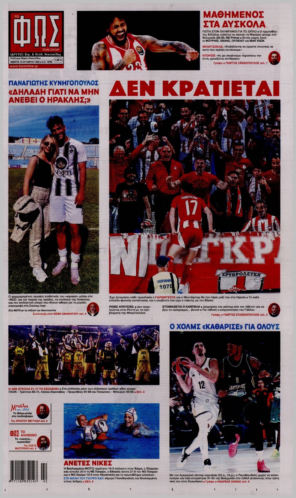 Τα αθλητικά πρωτοσέλιδα της Πέμπτης (16/10)