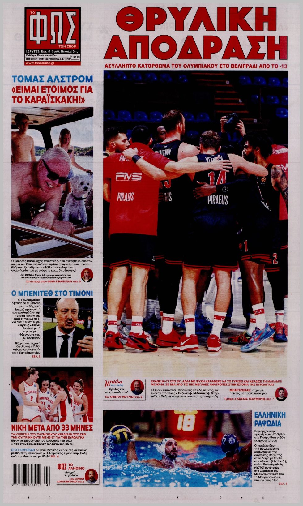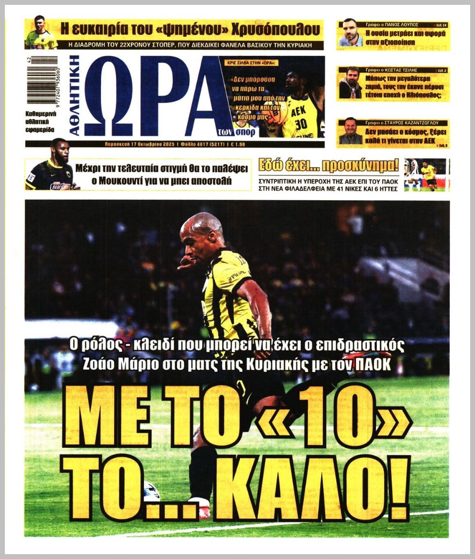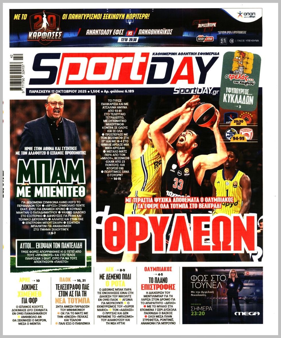 Τα αθλητικά πρωτοσέλιδα της Παρασκευής (17/10)