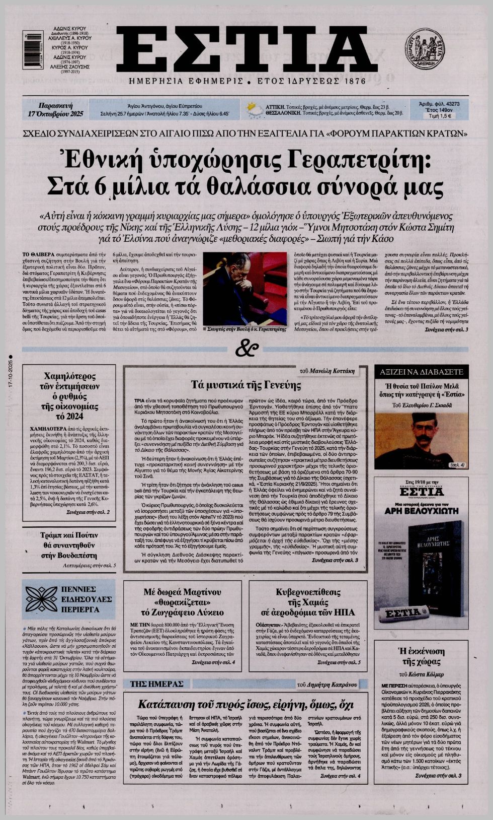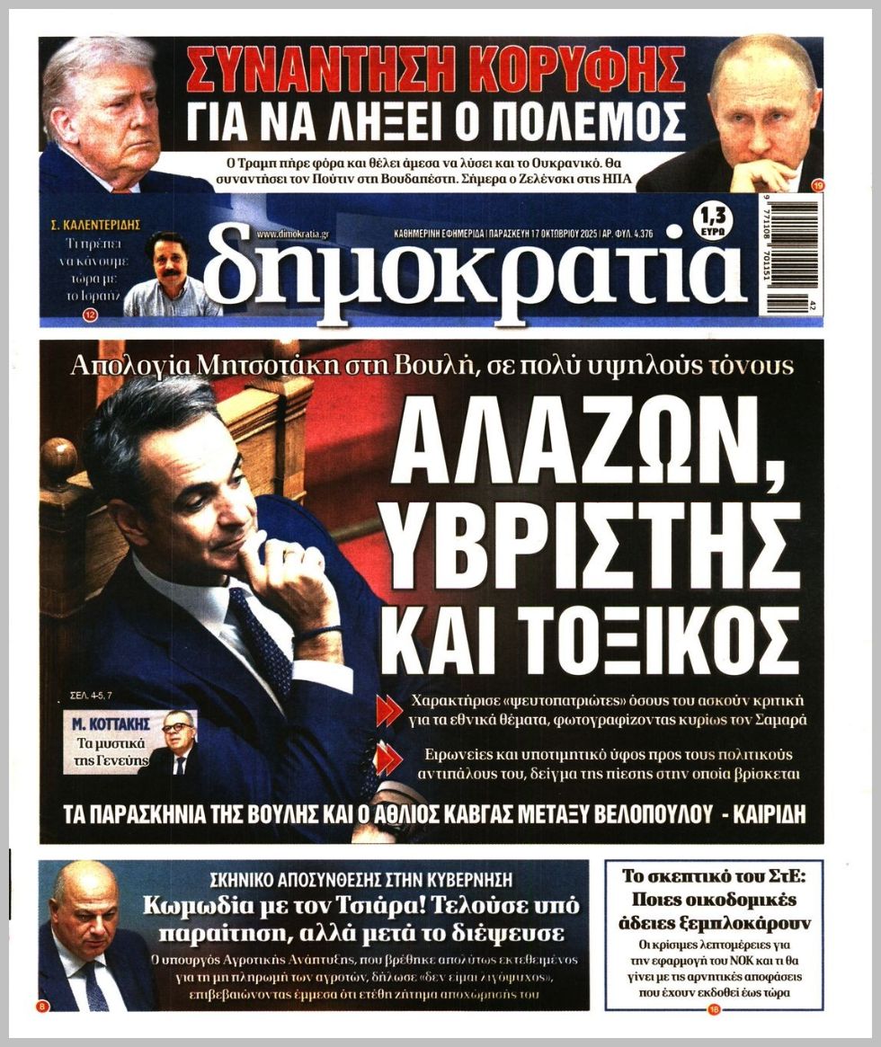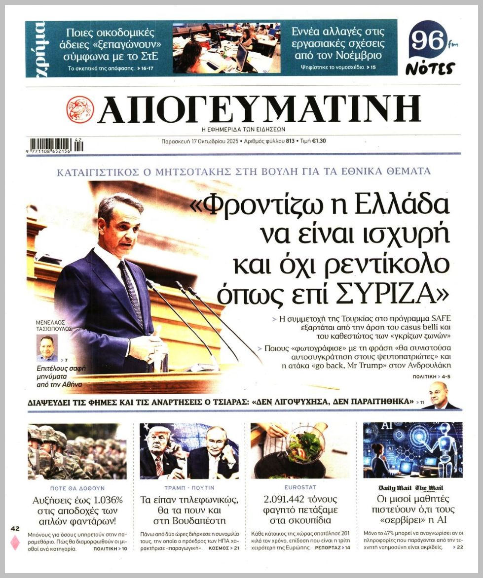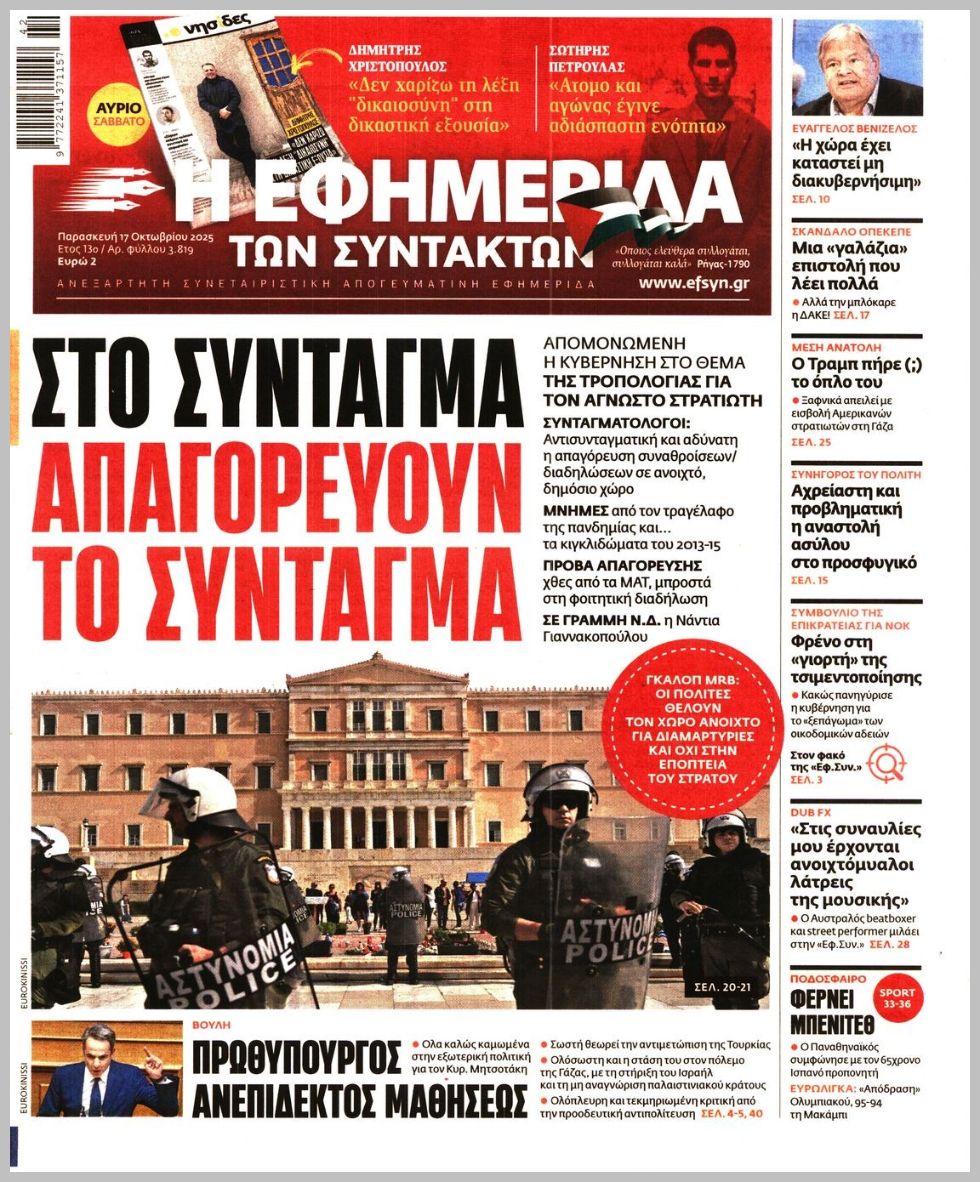 Τα πρωτοσέλιδα της Παρασκευής (17/10) σε Κρήτη και Αθήνα
