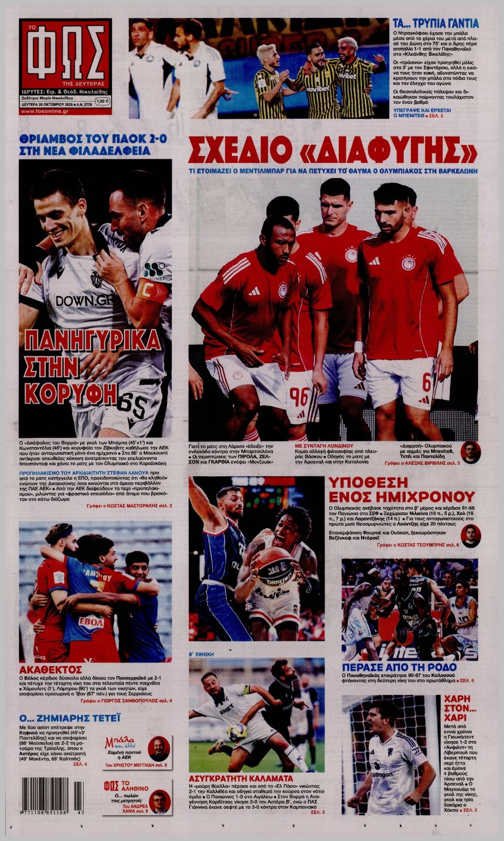 Τα αθλητικά πρωτοσέλιδα της Τετάρτης (22/10)