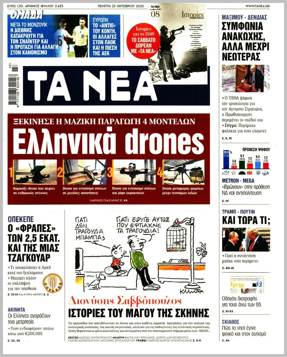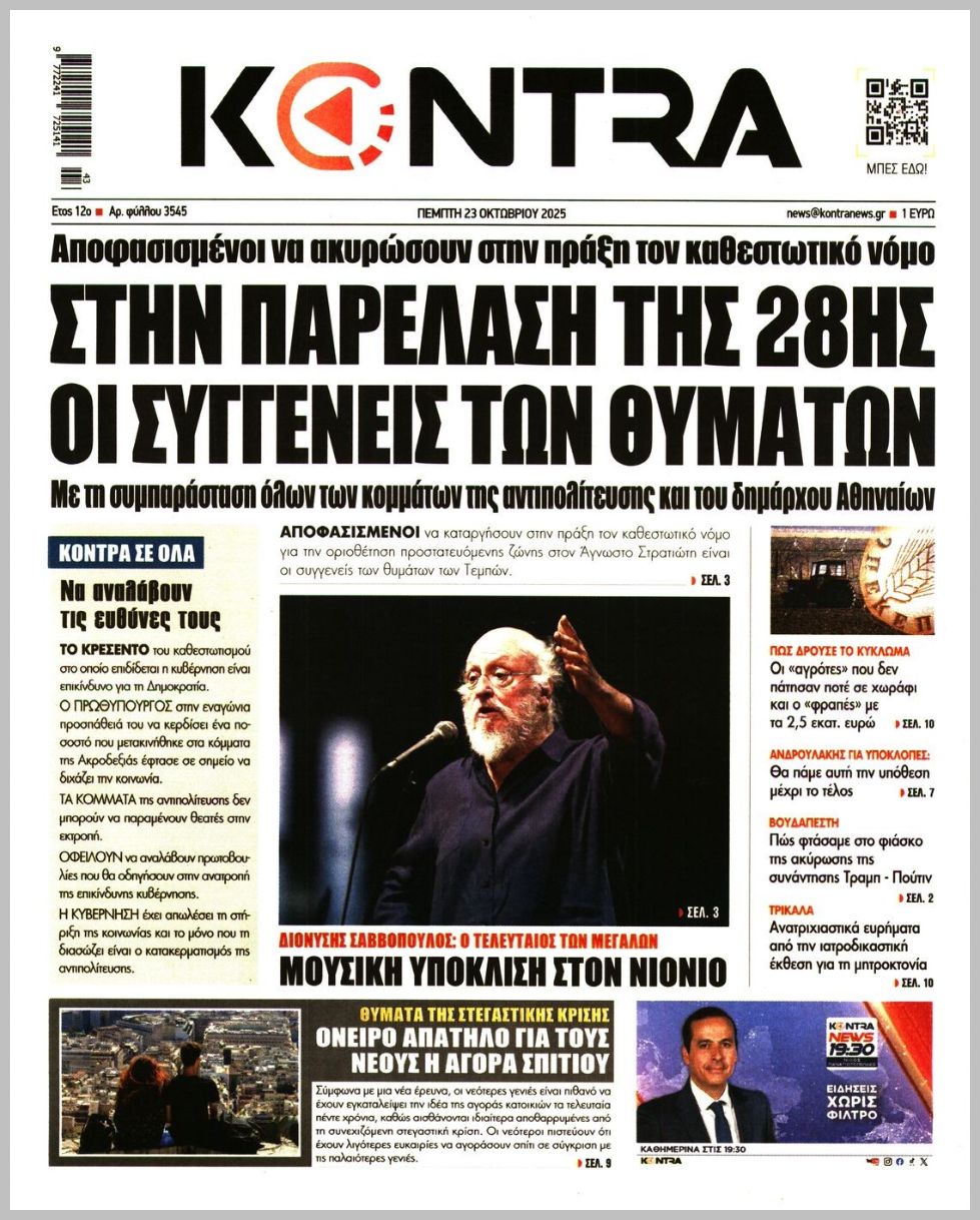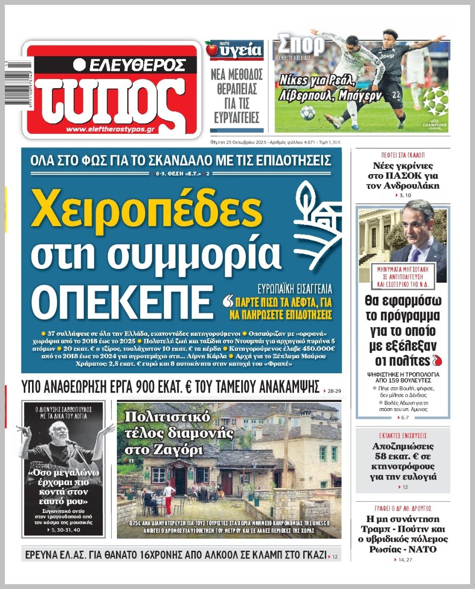 Τα πρωτοσέλιδα της Πέμπτης (23/10) σε Κρήτη και Αθήνα